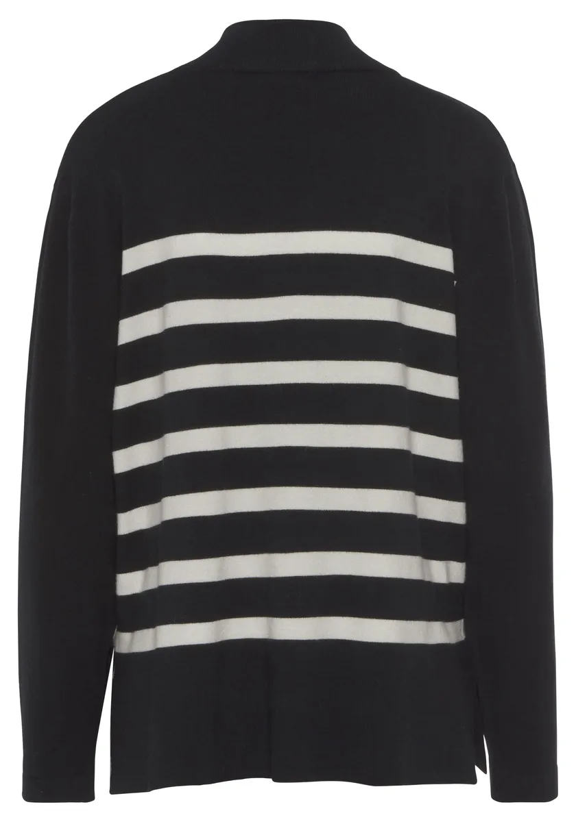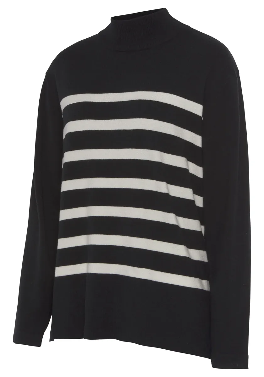 Свитер от Lascana с полосатым узором. Водолазка с воротником стойкой. Длинные рукава со слегка заниженными плечевыми швами. Облегает фигуру. Мягкая качественная вязка.