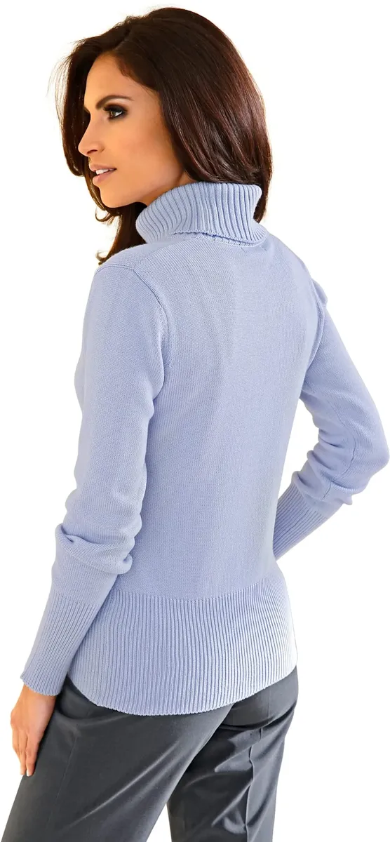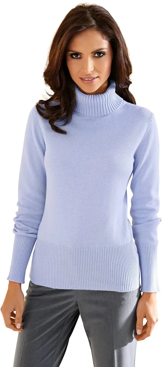 Свитер с высоким воротником. Настоящий партнер для хорошего настроения. Элегантное, мягкое качество с кашемиром. Широкие ребристые манжеты. Удобная водолазка. Облегающая фигуру форма. Длина около 60 см. 45% вискоза, 27% хлопок, 25% полиамид, 3% кашемир. Машинная стирка.