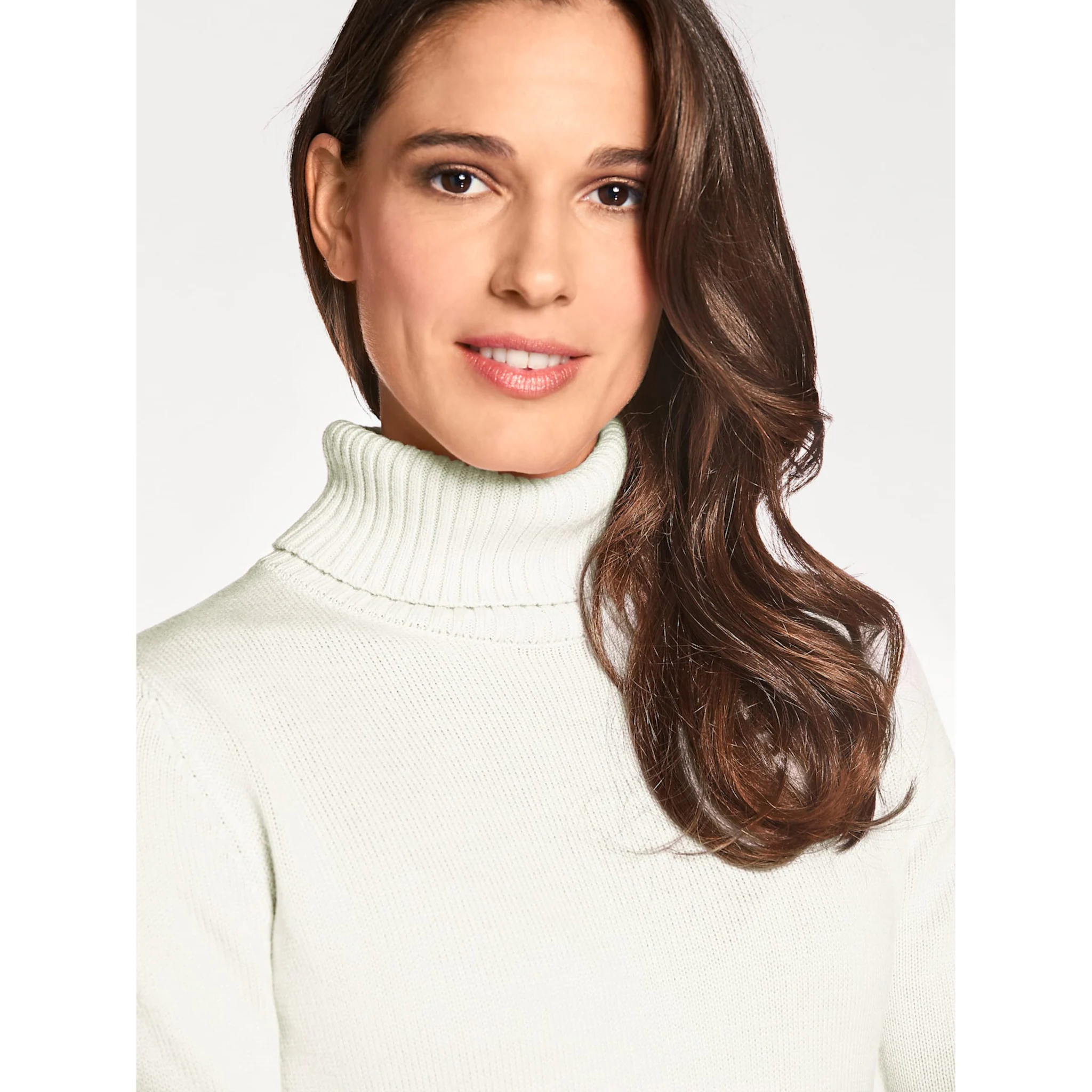 Свитер с высоким воротником. Настоящий партнер для хорошего настроения. Элегантное, мягкое качество с кашемиром. Широкие ребристые манжеты. Удобная водолазка. Облегающая фигуру форма. Длина около 60 см. 45% вискоза, 27% хлопок, 25% полиамид, 3% кашемир. Машинная стирка.