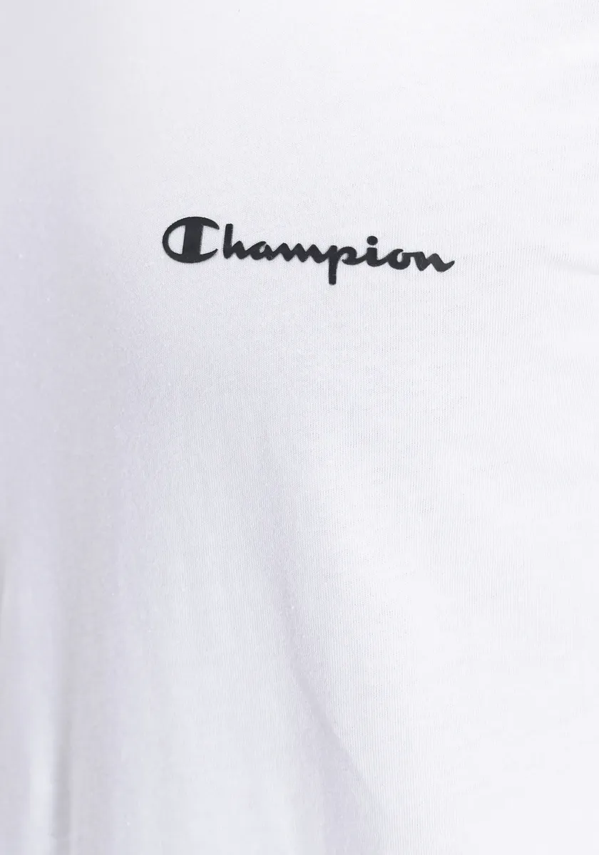 Спортивная мужская футболка от Champion. Длина до бедра и узкий крой. Модель украшена модным принтом с логотипом. Футболка впечатляет множеством вариантов использования: от спортивного до повседневного. Доступен в упаковке по 2 шт.
