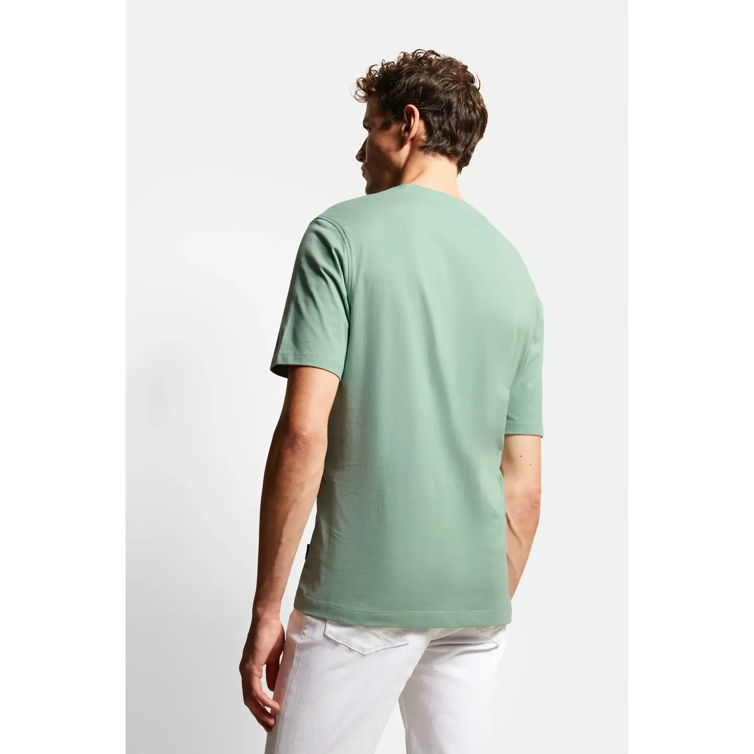Наша базовая футболка с небольшим принтом «Бугатти» на груди и этикеткой с флагом «Бугатти» на левом боковом шве — это больше, чем просто базовая модель. Простая элегантность сочетается с тонким присутствием бренда – идеально подходит для универсальных комбинаций. Соло с джинсами или под куртку: эта футболка – незаменимый предмет гардероба.