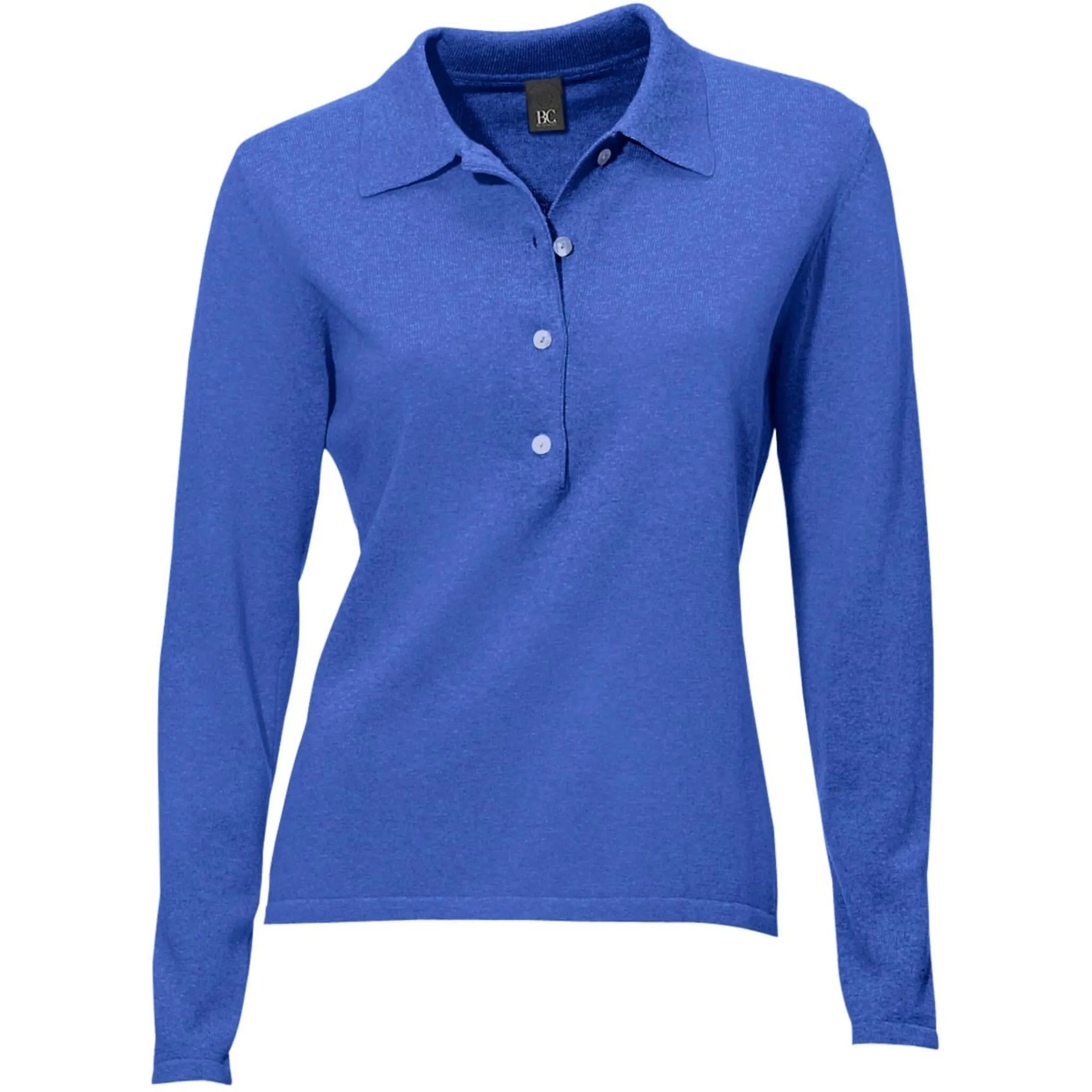 Свитер-поло Спортивный модный партнер из мягкой тонкой вязки. Облегает фигуру, с планкой на полупуговицы и длинными рукавами. 100% хлопок. Машинная стирка.
