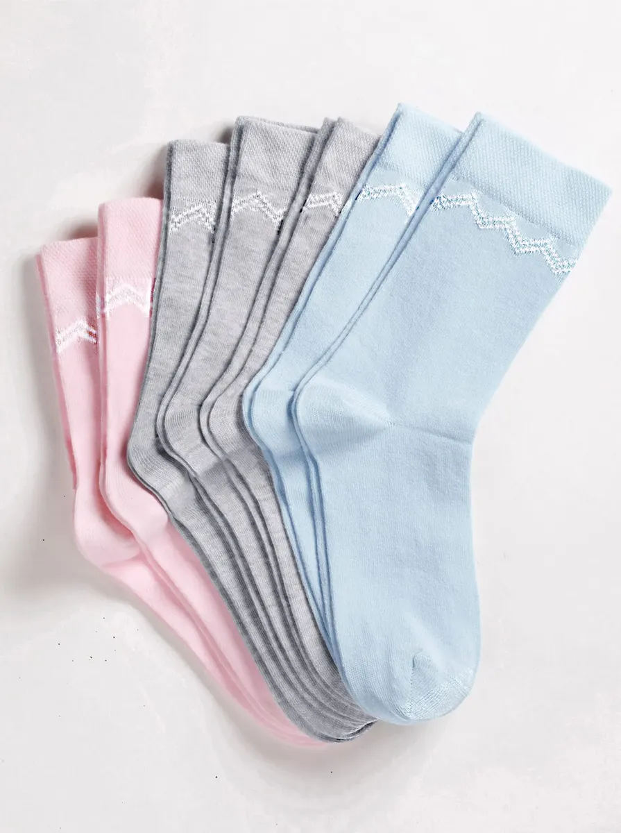 При покупке вы можете получить 7 пар женских носков от Waschpur! В модных пастельных тонах с двойным зигзагообразным краем. Благодаря гибкому комфортному поясу без разрезания резиновых нитей они очень удобны. Кружево, связанное вручную. 80% хлопок, 18% полиамид, 2% эластан.