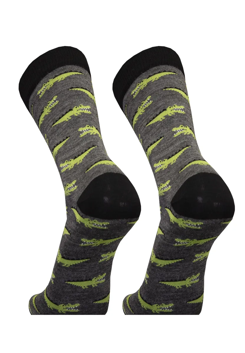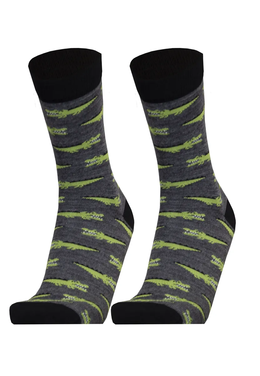 Эти носки от UphillSport изготовлены из экологически чистой, не требующей мулинга, дышащей шерсти мериноса с гладкой структурой. Что делает носки такими особенными, так это рисунок крокодилов по всей поверхности. Они идеальны для повседневной носки, их можно носить круглый год, как на отдыхе, так и на работе. Благодаря уровню нагрева 3 носки с рисунком можно носить в любое время года. Они впечатляют своей приятной толщиной и при этом кажутся очень легкими. Носки имеют удобную длину до икры и эластичны. Их растяжимость гарантирует, что они всегда будут оставаться на месте, не скользя и не сдавливая ногу.
