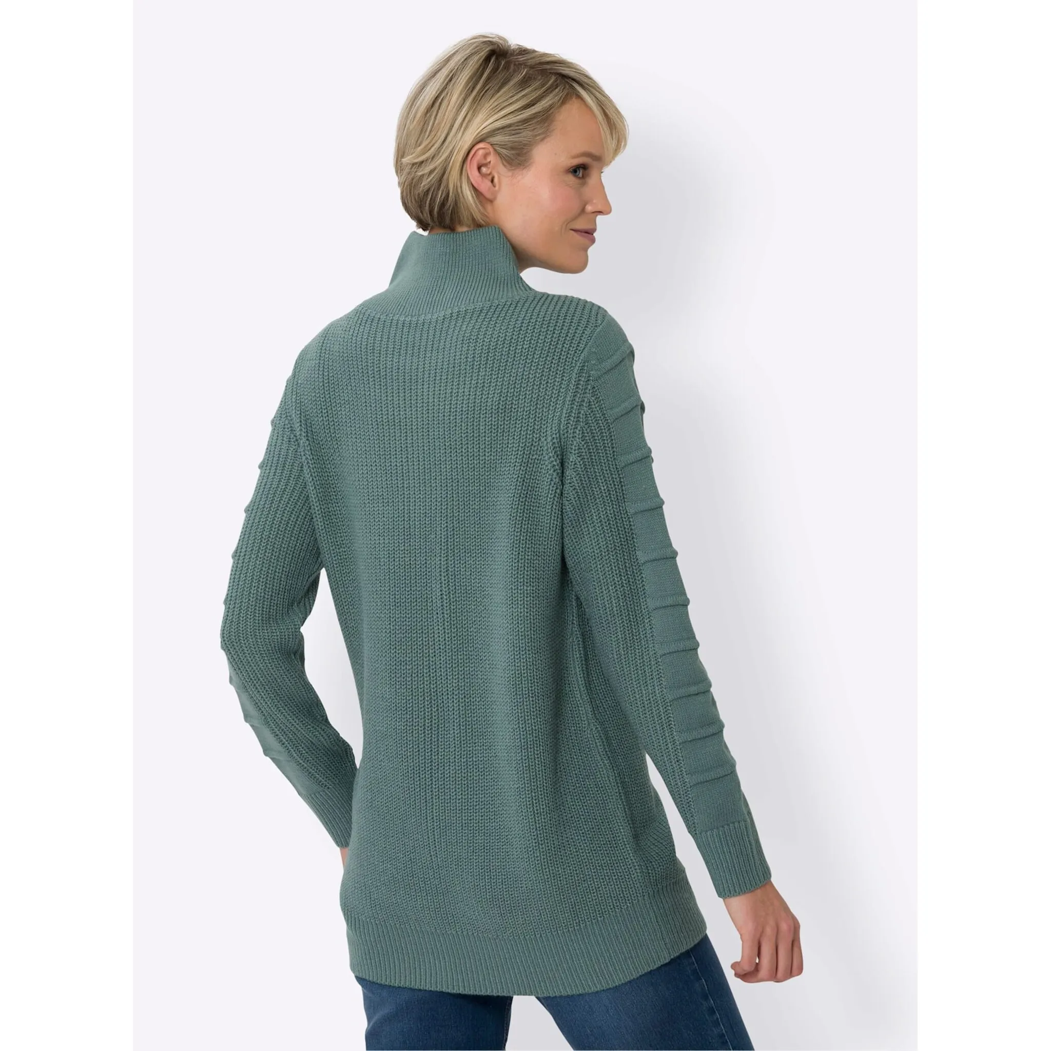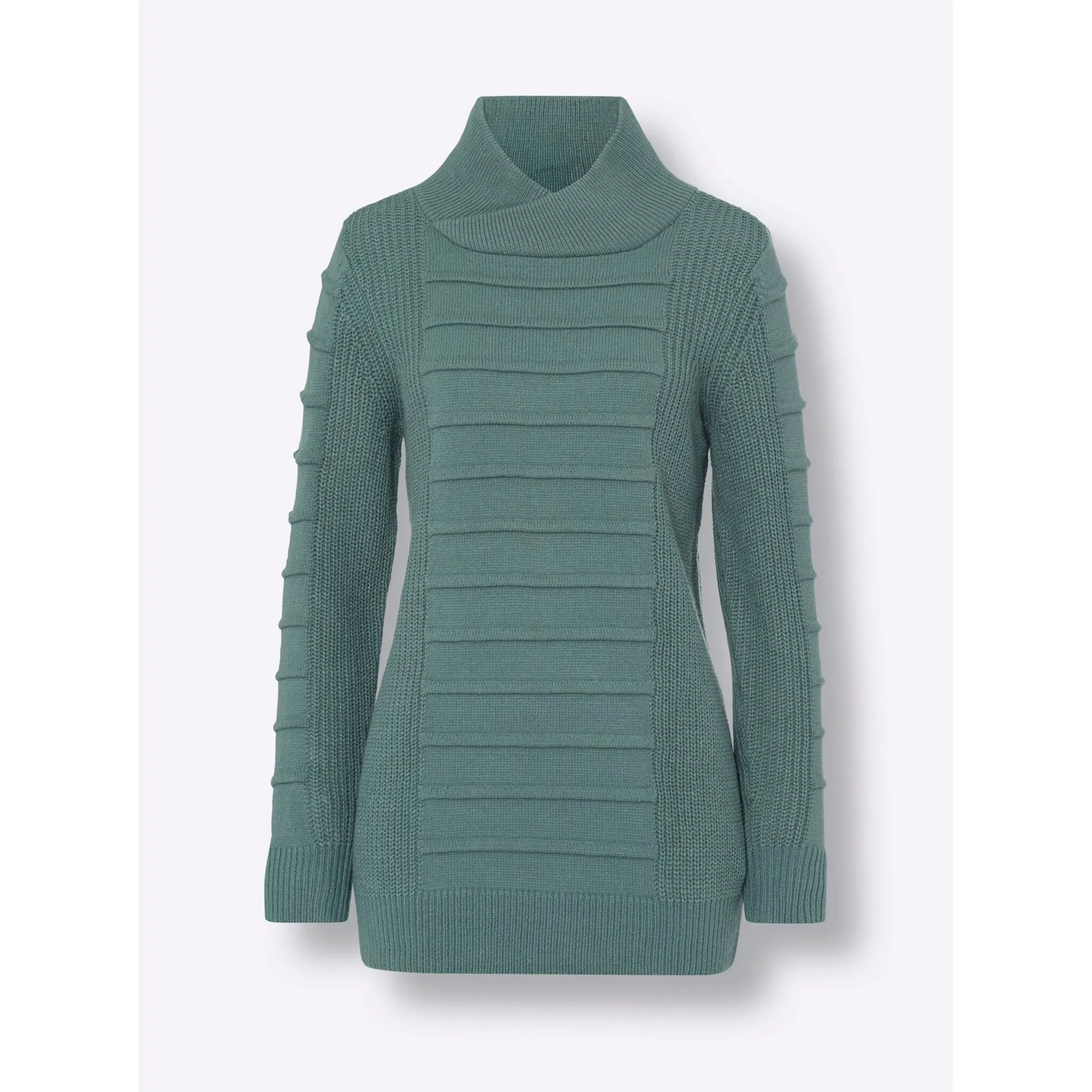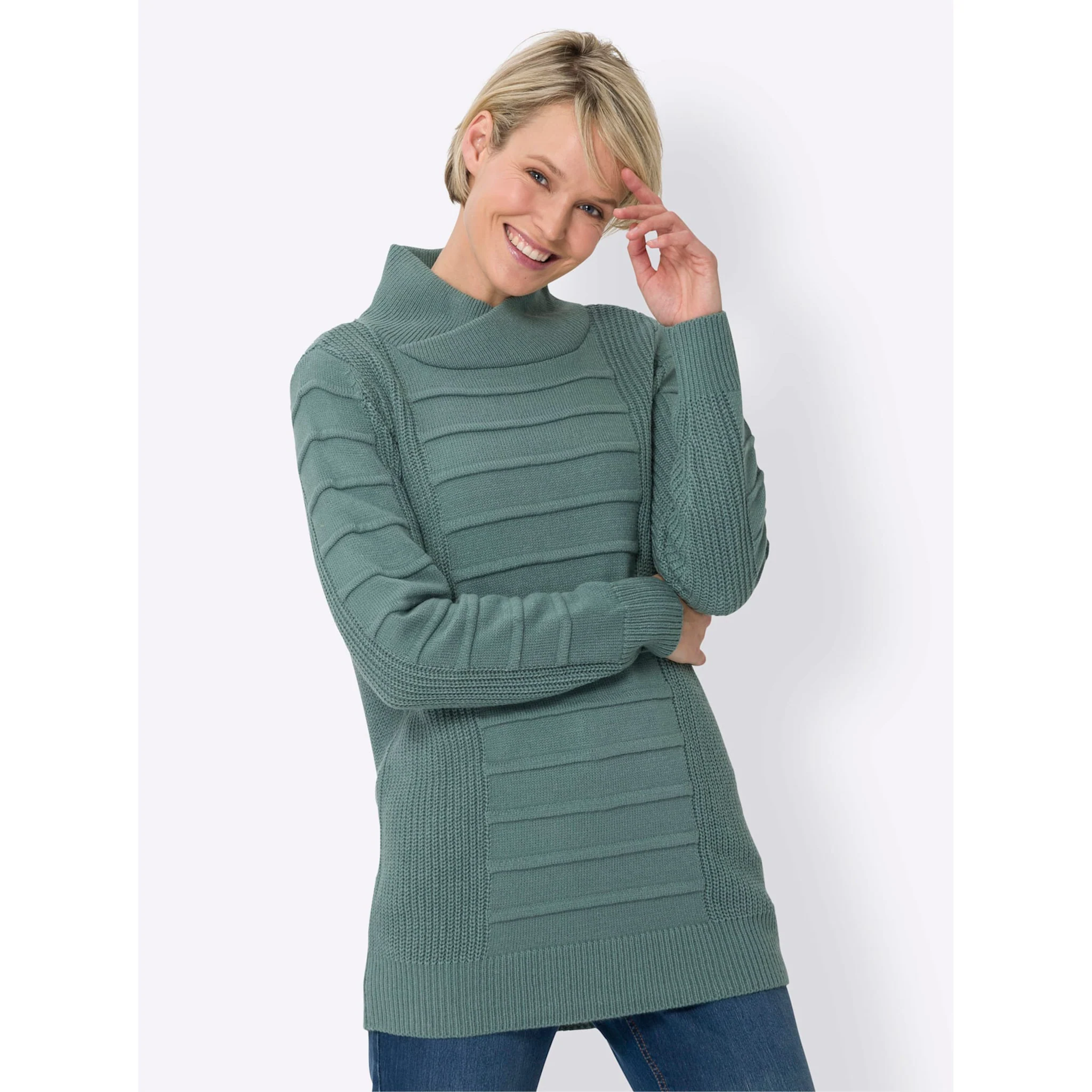 Привлекательная длинная форма делает этот длинный свитер настоящим фаворитом. Комбинация сложного вязаного узора. Асимметричный воротник-стойка двойной обработки. Ребристые манжеты на длинных рукавах и по нижнему краю. 100% полиакрил. Машинная стирка.