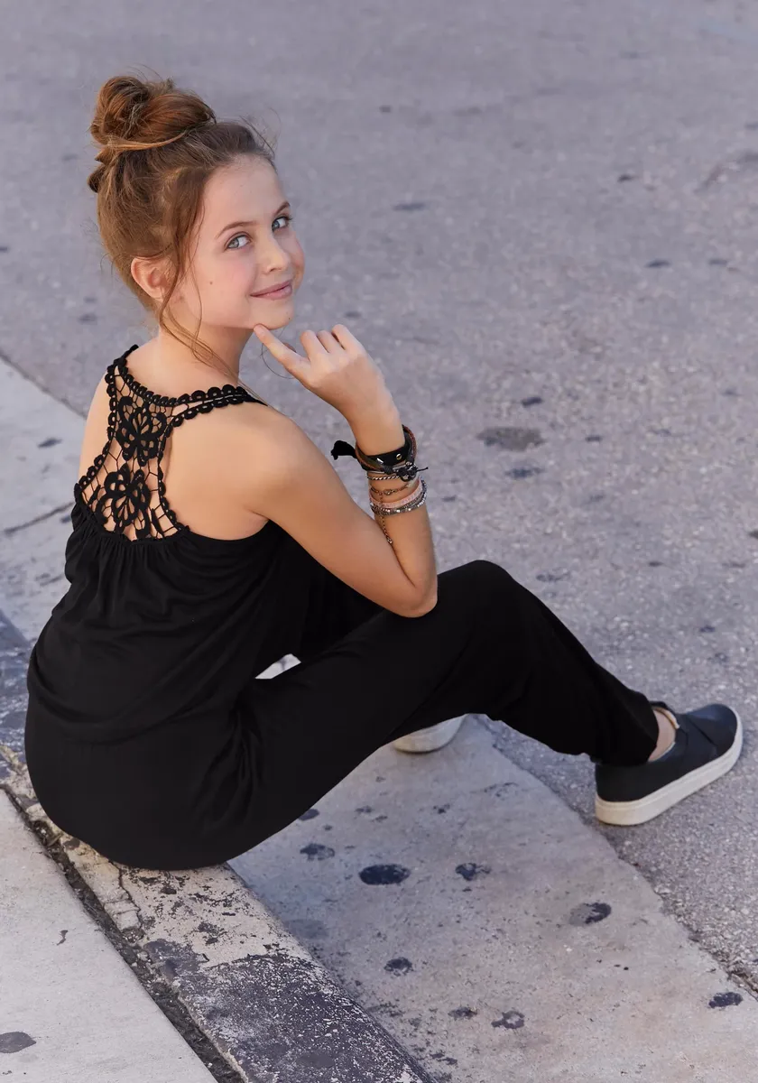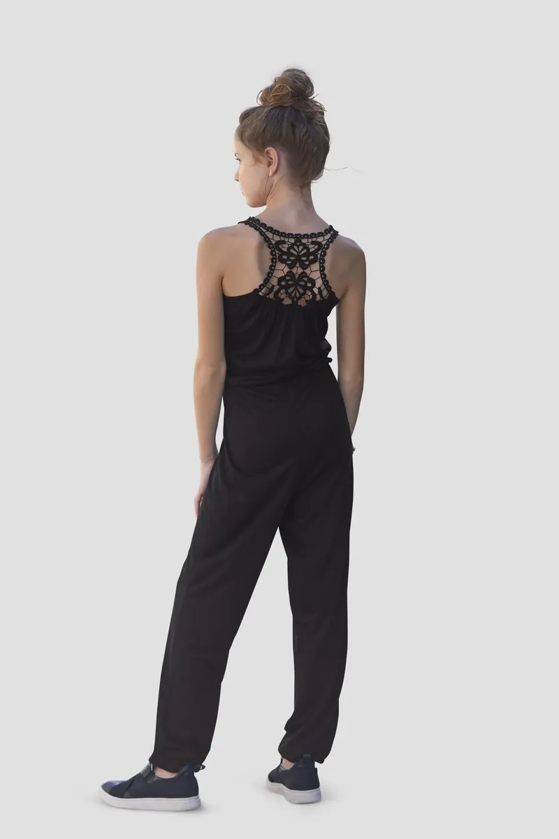 Комбинезон KIDSWORLD с кружевной вставкой сзади, черный