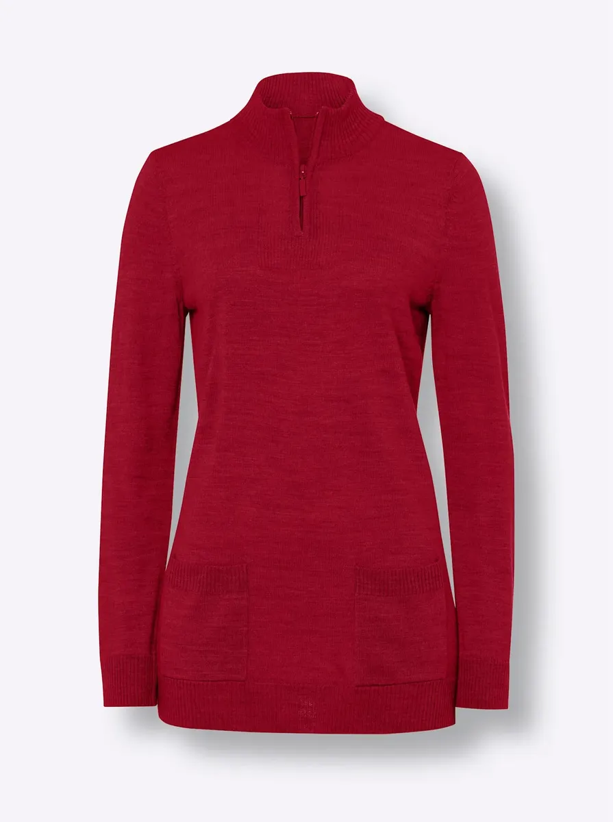 Свитер с воротником стойкой Classic Basics "Пуловер", красный