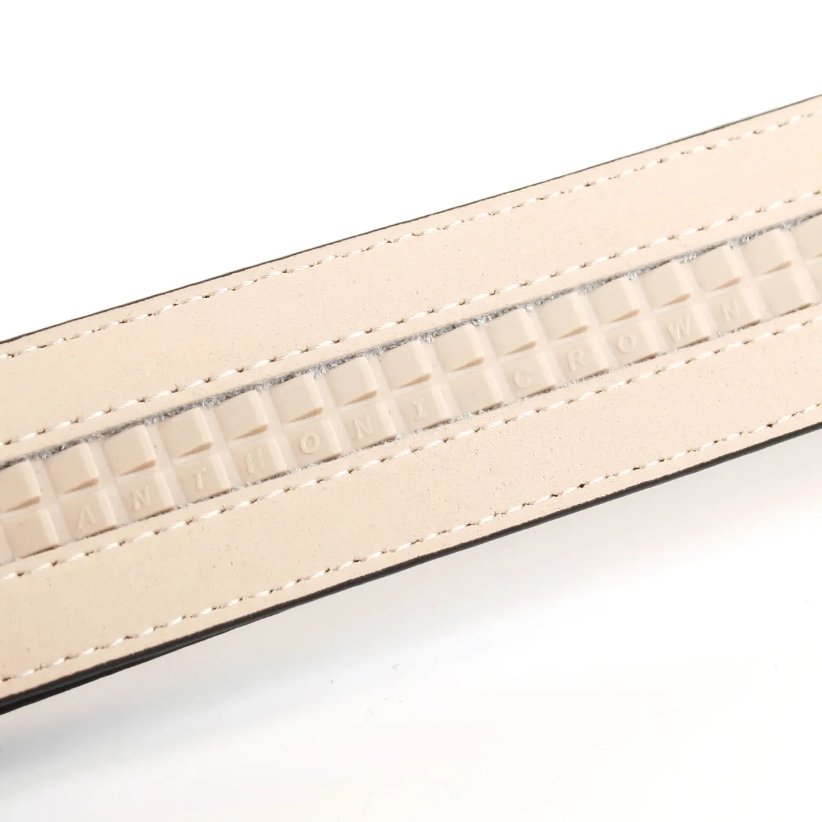 Нет пряжки и дырок в коже.