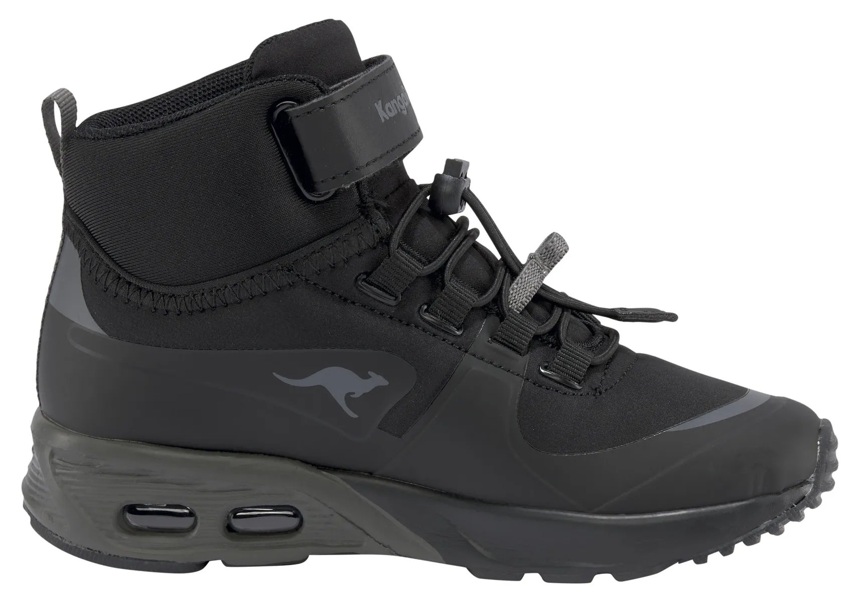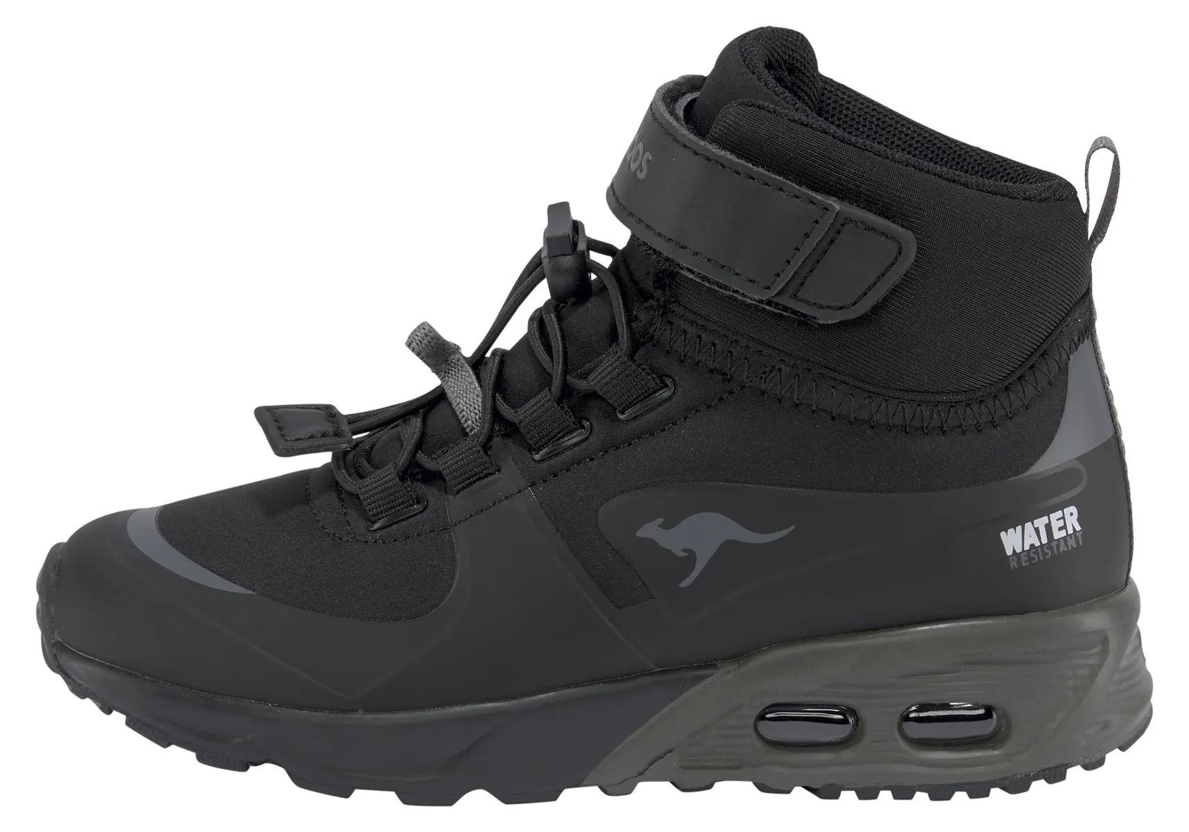 Высокие кроссовки «KX-Hydro» от Kangaroos. Удобный синтетический верхний материал. С видимой воздушной подушкой в ​​пятке. Контрастные детали. Липучка и шнуровка. Мягкий язычок и вход. Потяните вкладку. Профилированная резиновая подошва.