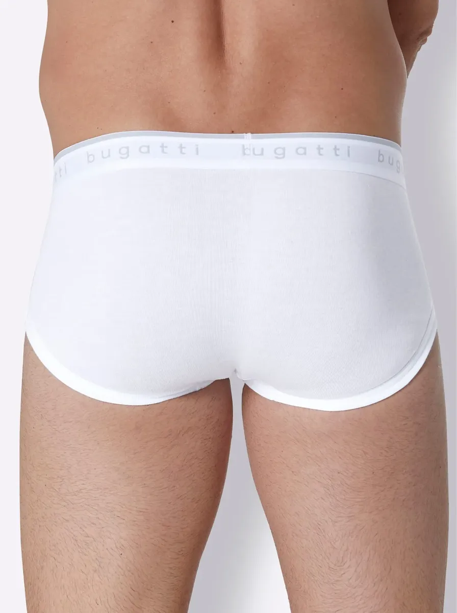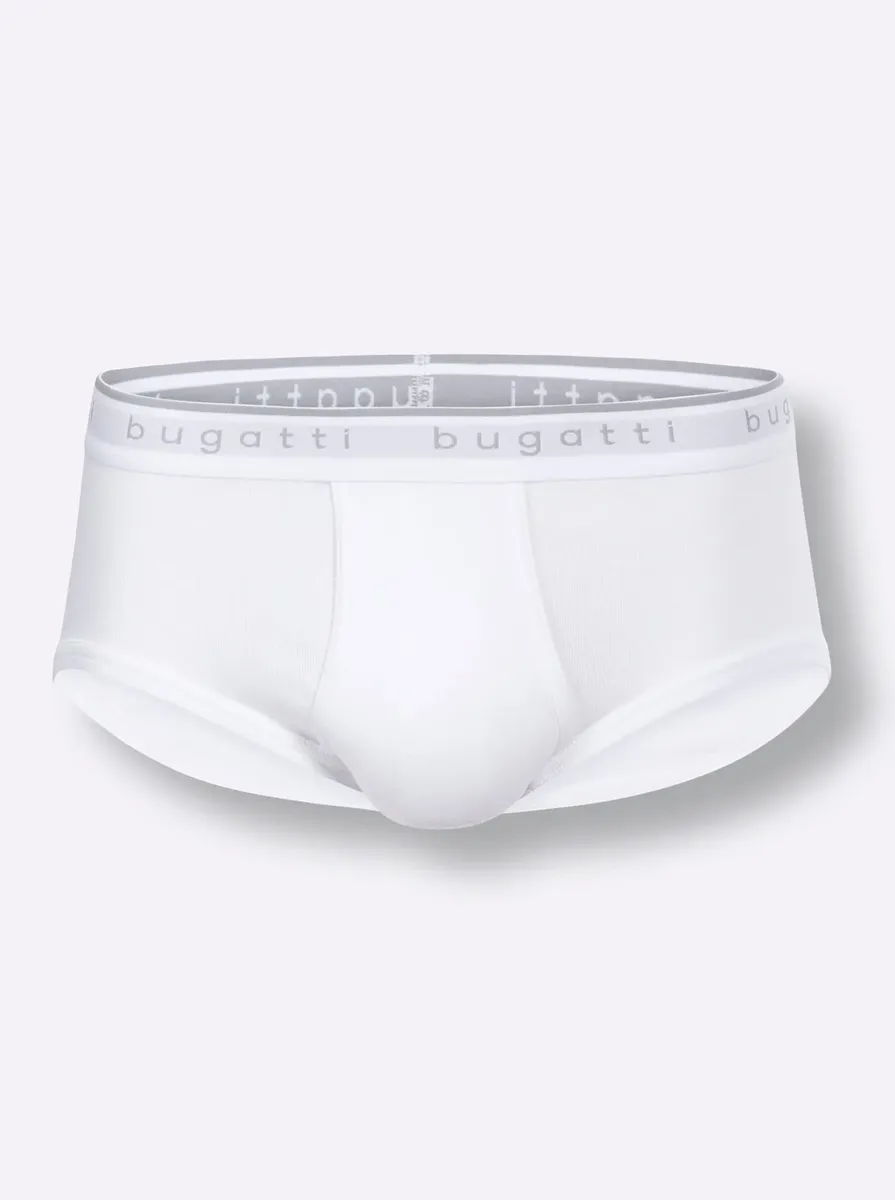 Высокие трусы от Bugatti с ширинкой. Тканый эластичный пояс с надписью Bugatti. Тонкое ребро. Чистый хлопок.