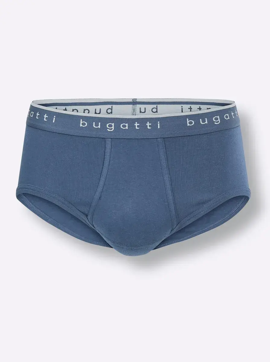 Высокие трусы от Bugatti с ширинкой. Тканый эластичный пояс с надписью Bugatti. Тонкое ребро. Чистый хлопок.