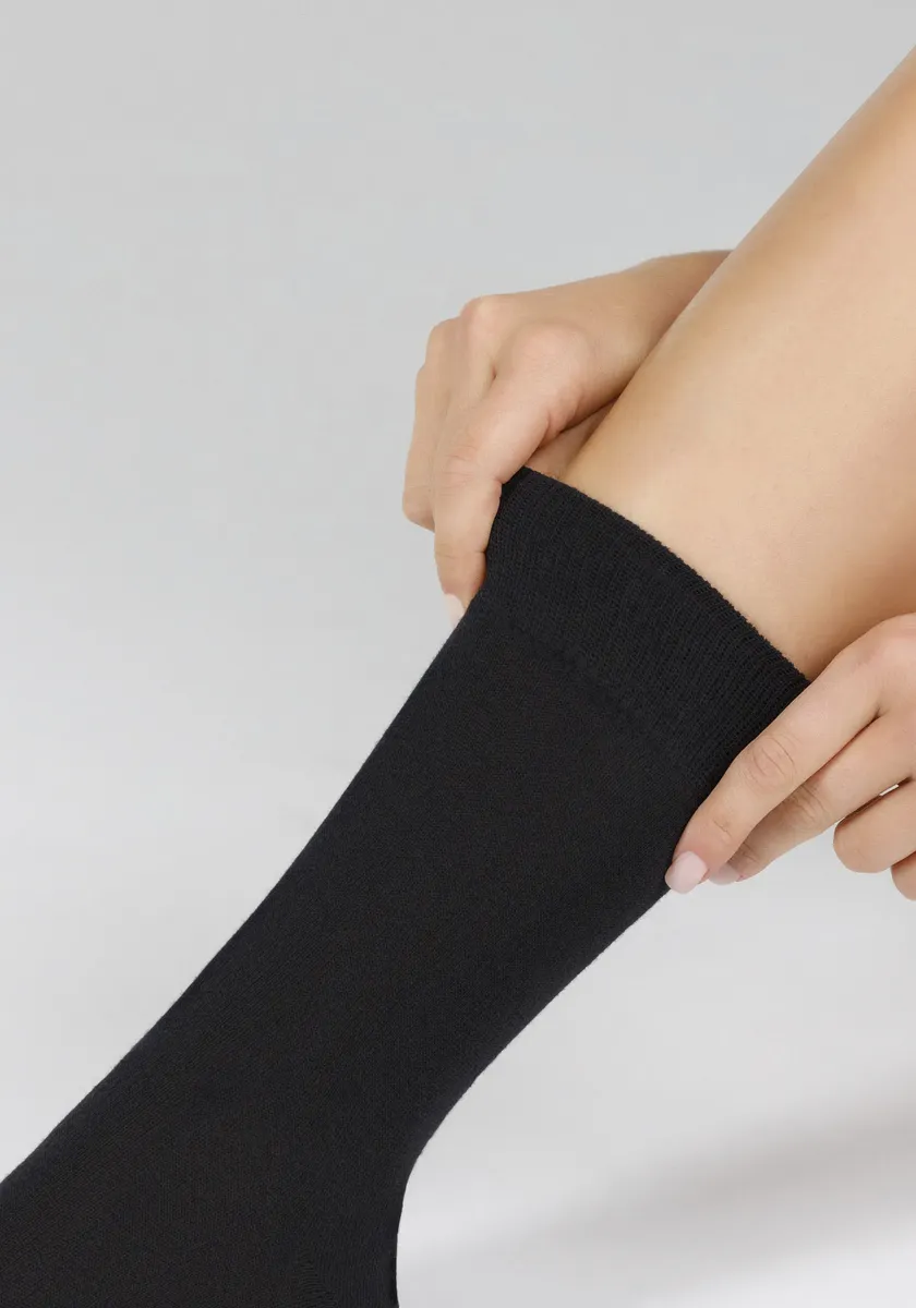Эти удобные, простые в уходе и универсальные носки из приятного сочетания материалов подходят как мужчинам, так и женщинам. Они имеют мягкий пояс без раздражающих швов, сохраняют форму и долговечны. Они также имеют голенище средней высоты и широкий мягкий пояс для оптимальной поддержки и комфорта. Смесь натурального хлопка с полиамидом и эластаном обеспечивает оптимальную посадку и легко стирается. Модели имеют среднюю высоту и достигают половины икры.