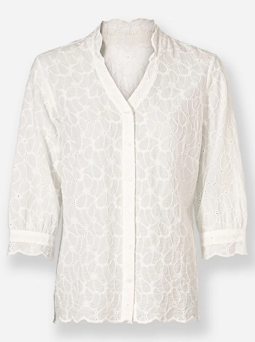 Будь то для особых случаев или для повседневной носки с джинсами — эта блузка — модная мечта, выполненная из приятного мягкого, слегка прозрачного кружева Мадейра с цветочным узором. Игривая деталь — закругленные края воротника-стойки, манжеты на пуговицах на рукавах 3/4 и по нижнему краю. С открытым V-образным вырезом и планкой на пуговицах во всю длину. Поддержите инициативу «Хлопок, сделанный в Африке». 100% хлопок. Машинная стирка.
