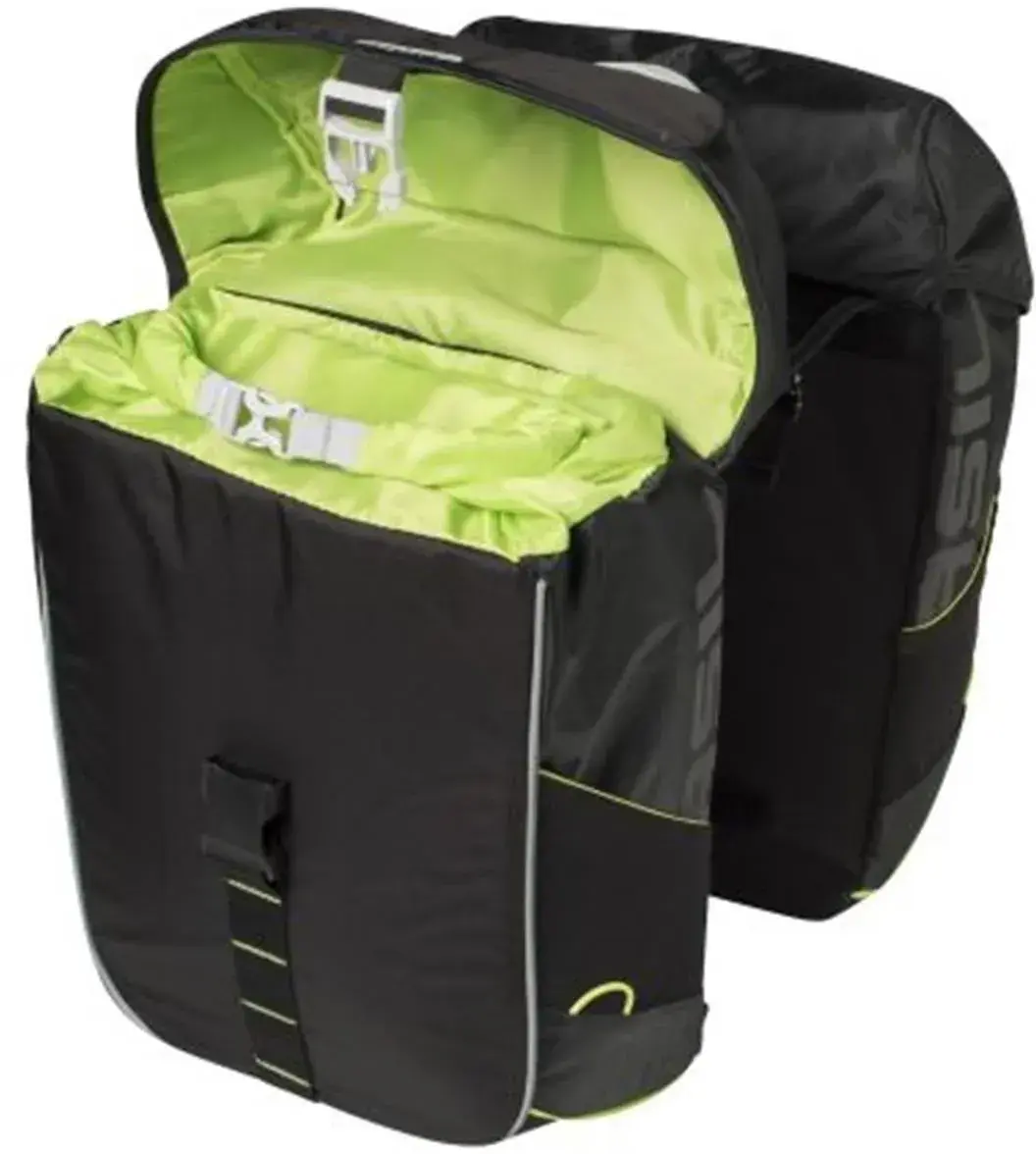 Высококачественную и прочную двойную сумку Miles можно прикрепить к багажнику, а также использовать как сумку через плечо, что делает ее идеальной для работы или отдыха. Вместимость сумки составляет около 34 литров, поэтому вы можете легко перевозить ноутбук или другие предметы. Сумка водонепроницаема, поэтому вещи внутри хорошо защищены даже под дождем, а также имеет светоотражающие детали, чтобы вас было хорошо видно даже в темноте.