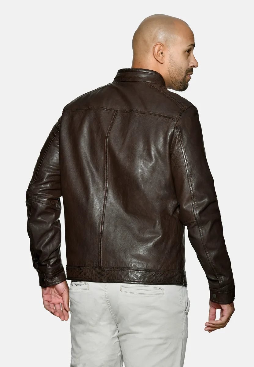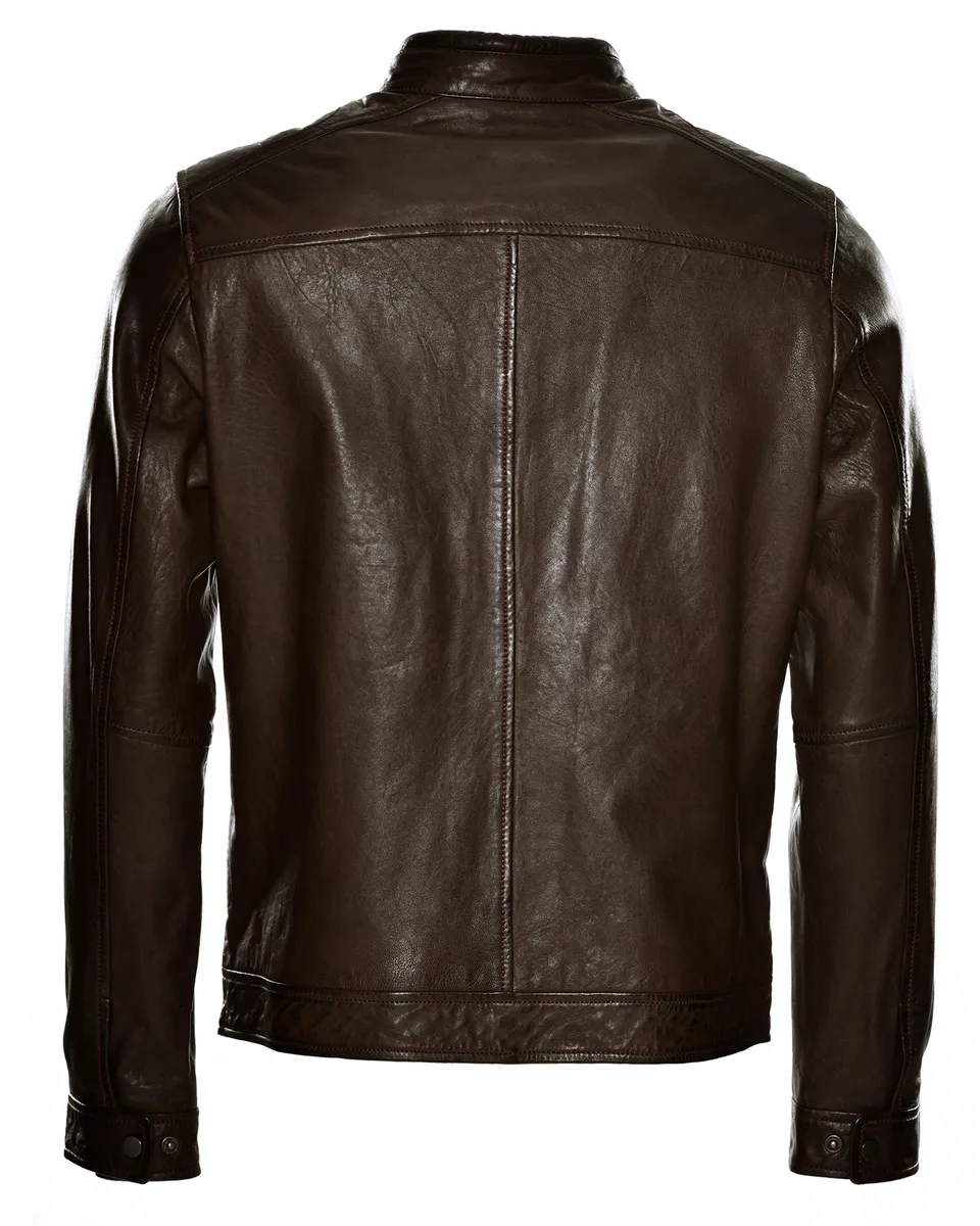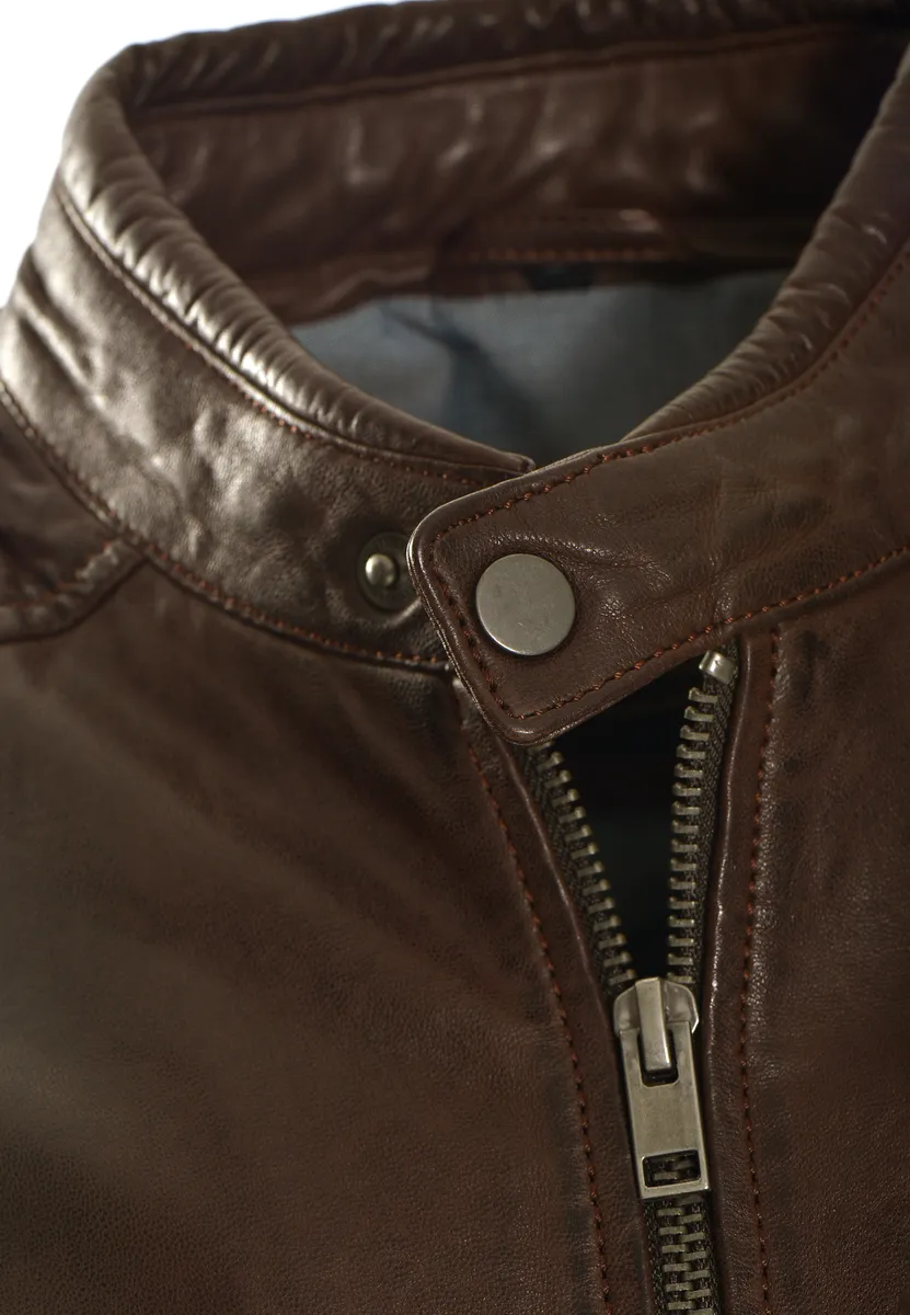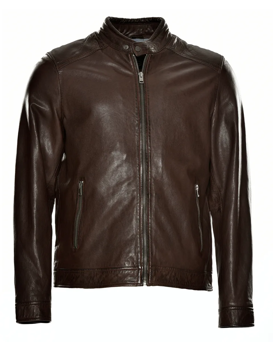 Высококачественные детали, такие как боковые карманы на молнии и простые декоративные швы, подчеркивают элегантный дизайн. Куртка застегивается на прямую молнию и фиксируется кнопкой на воротнике-стойке.Особенности: нетОтбеливание: Не отбеливатьПодкладка: Легкая подкладкаТип размера: ЕВРО-размерыСтрана-производитель: ПакистанПроизводитель: JCCCКоллекция: Весна/Лето 20Форма воротника : Воротник-стойкаСостав материала: Внешний материал: 100% кожа ягненка / Подкладка: 100% хлопок / Подкладка рукавов: 100% полиэстерДлина: обычнаяМатериал подкладки: хлопокМатериал внешней ткани: гладкая кожаПримечание по материалу: нет/не актуальноВыкройка: однотоннаяПосадка: прямая Инструкция по уходу: Специальная чистка кожиТип/стиль изделия: байкерский Длина спины: около 63 см для данного размера. MSСезон: весна-летоПодол: прямой Тип застежки: молнияНабивка: нет/не актуальноЦелевая группа: мужчиныДлина рукава: длинный рукав