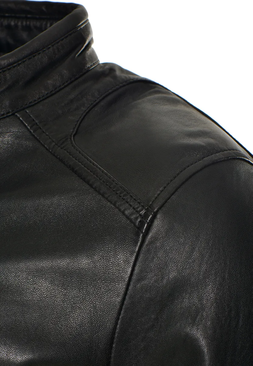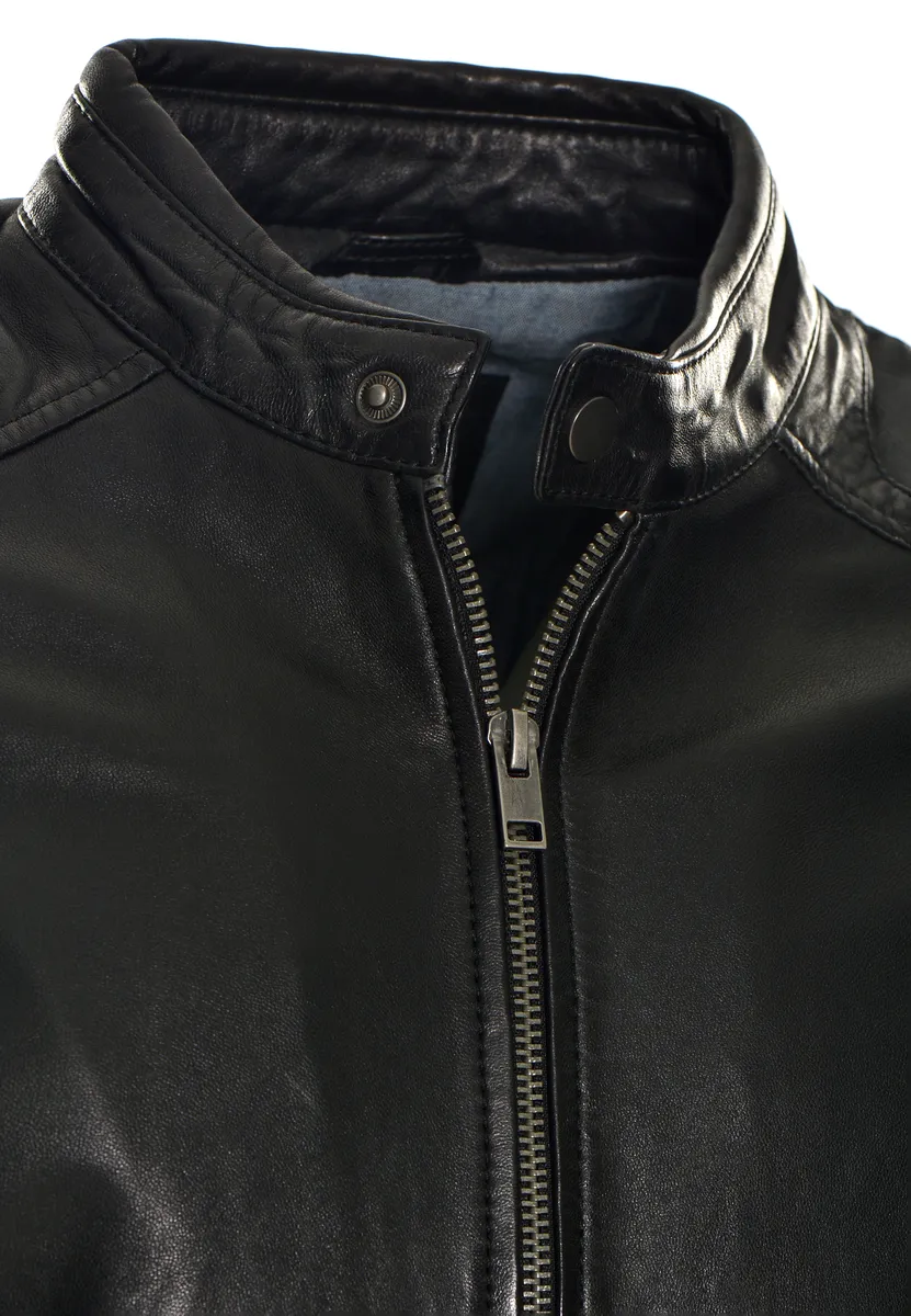 Высококачественные детали, такие как боковые карманы на молнии и простые декоративные швы, подчеркивают элегантный дизайн. Куртка застегивается на прямую молнию и фиксируется кнопкой на воротнике-стойке.Особенности: нетОтбеливание: Не отбеливатьПодкладка: Легкая подкладкаТип размера: ЕВРО-размерыСтрана-производитель: ПакистанПроизводитель: JCCCКоллекция: Весна/Лето 20Форма воротника : Воротник-стойкаСостав материала: Внешний материал: 100% кожа ягненка / Подкладка: 100% хлопок / Подкладка рукавов: 100% полиэстерДлина: обычнаяМатериал подкладки: хлопокМатериал внешней ткани: гладкая кожаПримечание по материалу: нет/не актуальноВыкройка: однотоннаяПосадка: прямая Инструкция по уходу: Специальная чистка кожиТип/стиль изделия: байкерский Длина спины: около 63 см для данного размера. MSСезон: весна-летоПодол: прямой Тип застежки: молнияНабивка: нет/не актуальноЦелевая группа: мужчиныДлина рукава: длинный рукав