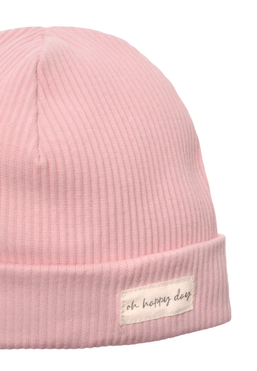 Эти шапки из мягкого ребристого материала с манжетой и нашивкой «Oh Happy Day» станут не только стильным аксессуаром, но и практичным и удобным выбором для самых маленьких — незаменимым аксессуаром в любое время года! Эта шапка станет идеальным компаньоном в прохладные дни. Материал не только обеспечивает исключительный комфорт в ношении, но и сохраняет форму — универсальная базовая вещь, которую можно носить круглый год. Удобная эластичная ткань плотно облегает голову ребенка и обеспечивает защиту чувствительной кожи ребенка благодаря комфорту.