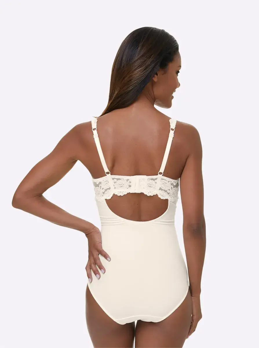 Это боди на косточках от Sassa не скупится на очарование! Передняя часть полностью отделана эластичным, слегка прозрачным кружевом, которое доходит до регулируемых бретелей сзади. С чашками, состоящими из двух частей. Подчашечки имеют мягкую подкладку. С застежкой на крючок сзади и в промежности. 90% полиамид, 10% эластан.