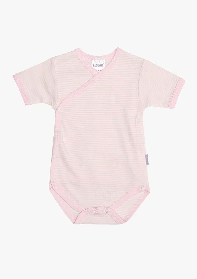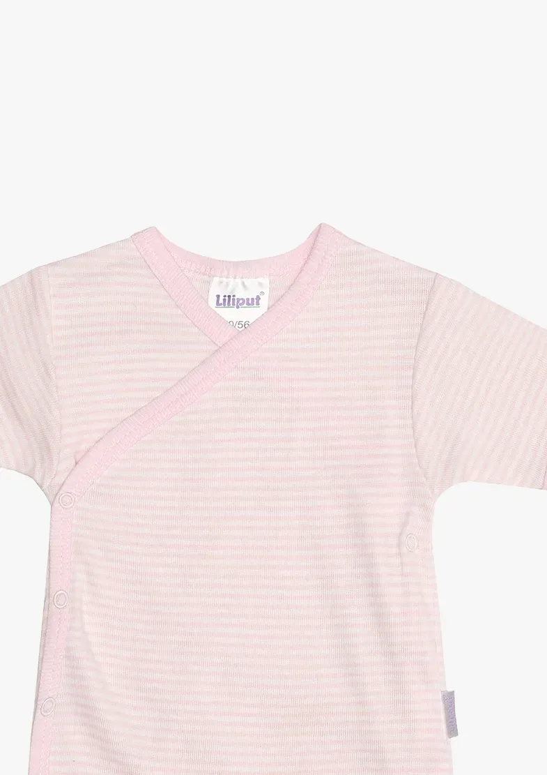 Это боди с запахом и короткими рукавами от Liliput окрашено в пряжу. Симпатичный образ подчеркивается тонким полосатым дизайном, а длинная застежка позволяет легко надевать и снимать сумку. Смена подгузников тоже не проблема. Как и всегда во всех продуктах Liliput, изделия из мягкого хлопка впечатляют своей безопасностью и удобством в ношении.