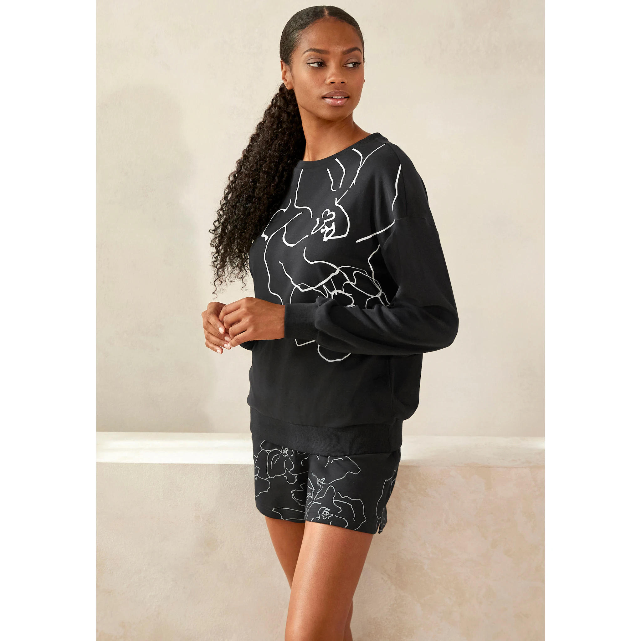 LASCANA толстовка "рубашка для дома" с принтом, одежда для дома, черный