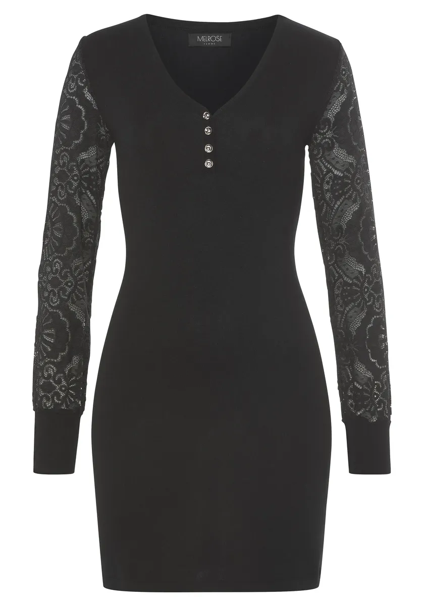 Будь то повседневный или шикарный образ, это трикотажное платье от Melrose почти гарантирует стильный образ. Он имеет тонкий крой и короткий. Оно имеет шикарный вид благодаря нежной кружевной ткани.