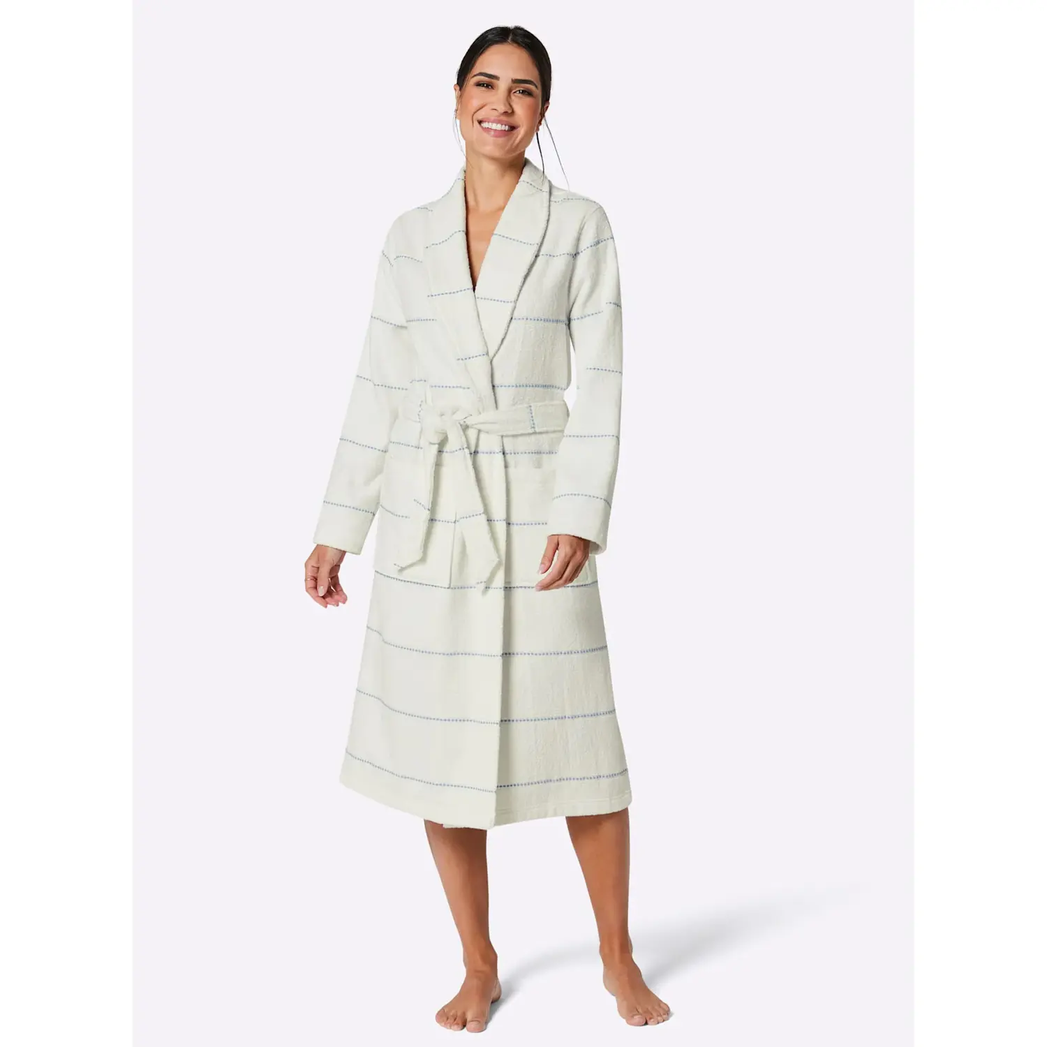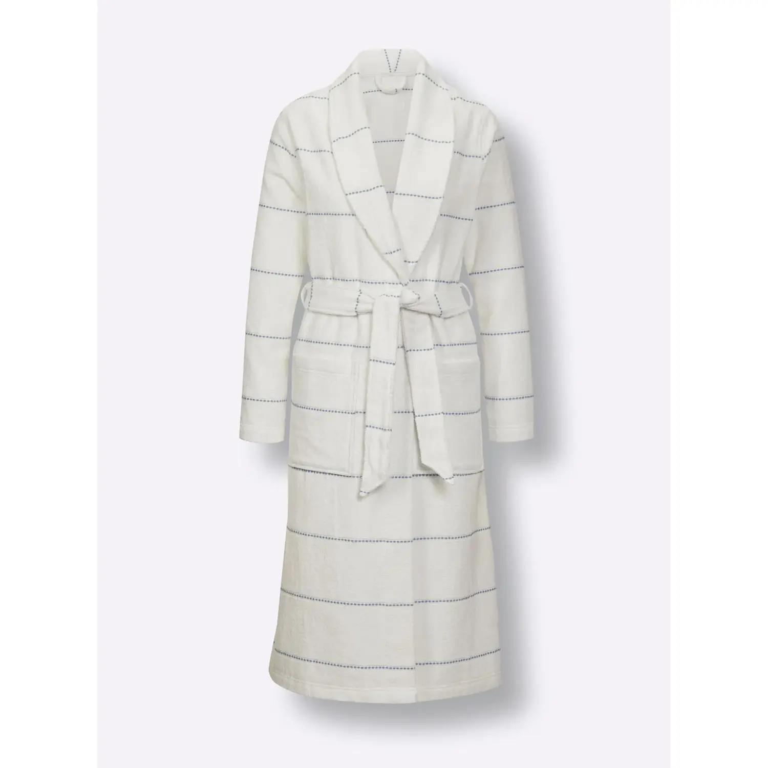 Фирменное качество от хорошего настроения: халат из уютной махровой ткани с расположенными полосками. С изящным шалевым воротником, шлевками и поясом-завязкой. Декоративная вышивка логотипа. Накладные карманы. Лента на внутренней стороне шеи. 100% хлопок.