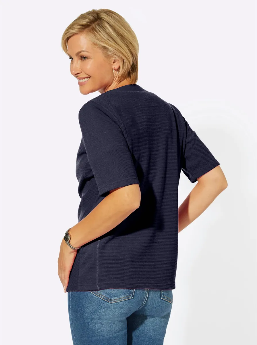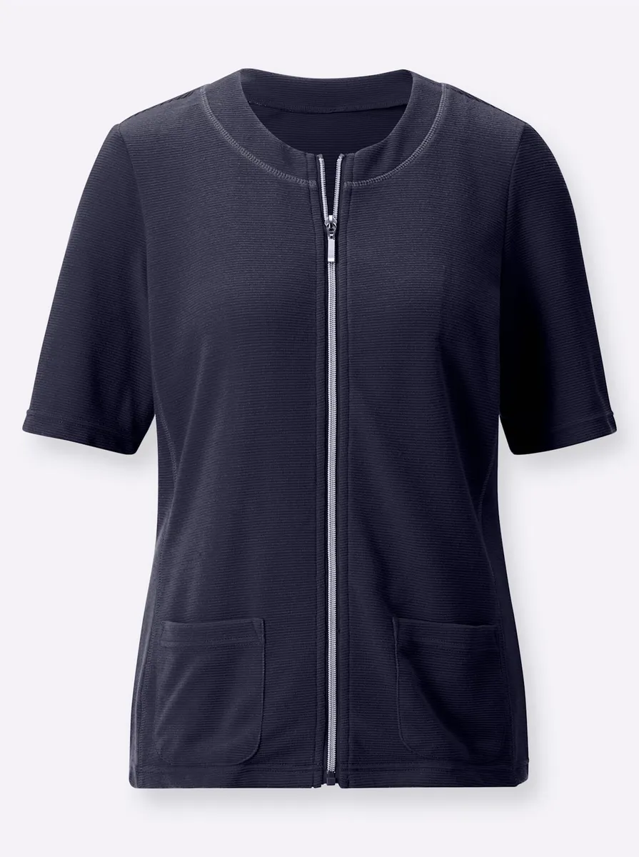 За ним легко ухаживать и оно прекрасно сочетается! Куртка-рубашка с круглым вырезом и застежкой-молнией серебристого цвета. Венские швы, которые не только декоративны, но и придают форму. Накладные карманы. Немного удлиненные короткие рукава. Жаккардовое качество стабильных размеров. 98% полиэстер, 2% эластан. Машинная стирка.