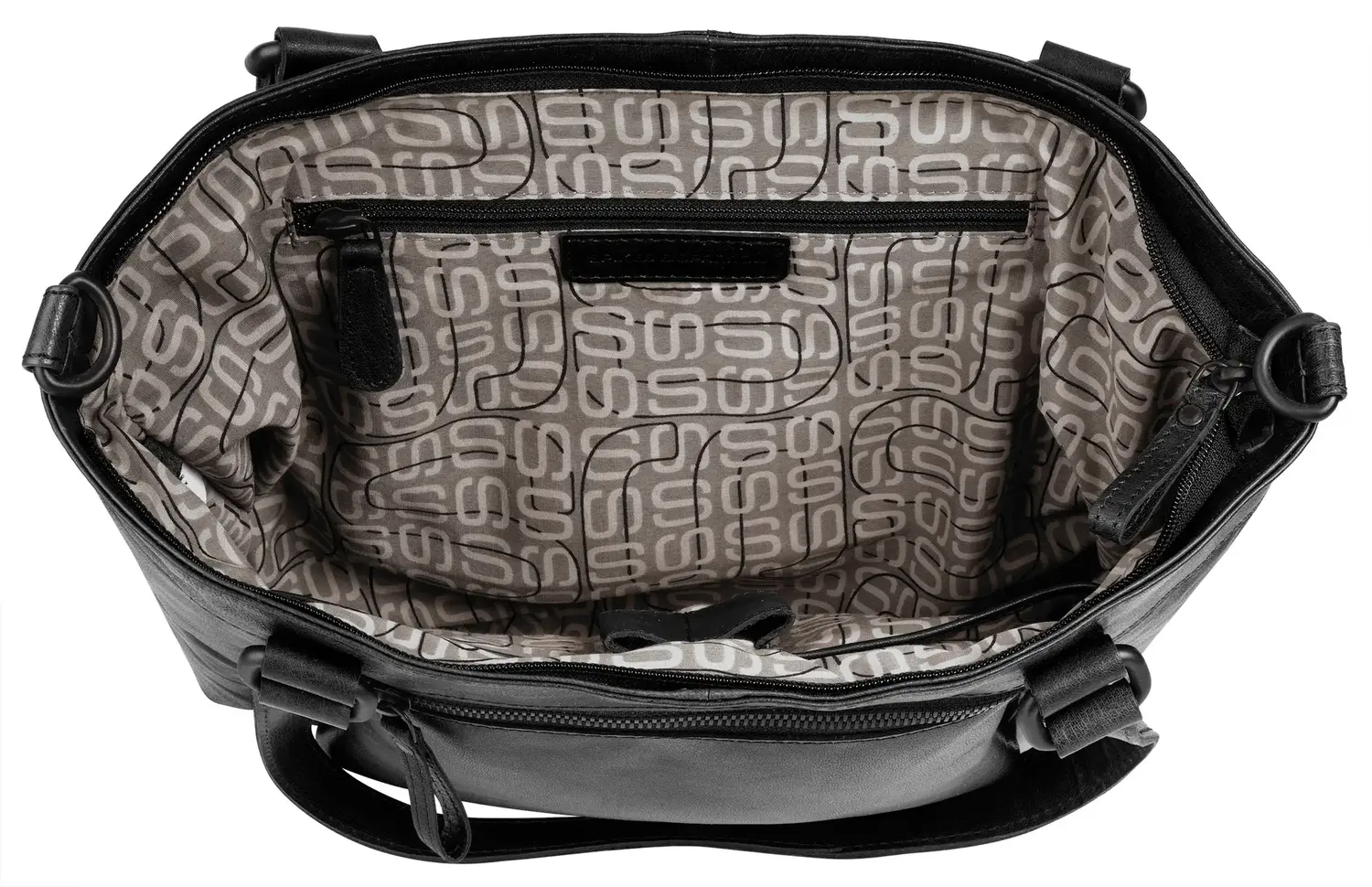 Кожаный шопер от Spikes & Sparrow: украшение повседневной жизни! Благодаря практичному и продуманному интерьеру это аксессуар, который невозможно пропустить. Ваш смартфон можно хранить безопасно и всегда под рукой в ​​соответствующем отделении для смартфона. В держателях для ручек можно хранить ручки и ручки, а ремешок для возврата ключа избавит вас от необходимости искать. Для большего разнообразия при переноске вы можете переключаться между съемным и регулируемым плечевым ремнем и двумя ремнями.* Изготовлено из 100% воловьей кожи* 1 основное отделение на молнии * 1 накладной внутренний карман* 1 внутренний карман на молнии* 1 внутреннее отделение для смартфона (до 6 дюймов)* 2 держателя для ручек внутри* 1 внутренний ремешок для ключа* 1 переднее отделение на молнии* 1 задний карман на молнии* 2 ручки для переноски* 1 плавно регулируемый съемный ремень через плечо (80–140 см)* тонкий логотип тиснение спередиВнутренний карман: нетРазмер выпуска: onesizeОсобенности: натуральная кожаШирина: 37 смРазмер: onesizeВес: 850Высота: 26 смДетали пола: усиленныеВнутренний вид: принтДополнение к названию: натуральная кожаГлубина: 9 смОсновная застежка: молнияПлечевой ремень: да (съемный, регулируемый)Отделение для смартфона Размер: 15,2 см (6 дюймов)Плечевой ремень (длина в см): 80 см - 140 смФормат: Альбомный форматНаружный материал: 100% коровья кожа Ручка для переноски: двойная ручка (мягкая)Внешняя поверхность: однотонная - шелковистая блестящаяВнутренний материал: смесь материаловВес: 0,85 кгКоличество: Основные отделения: 1Застежка основных отделений: на молнииКоличество передних карманов: 1Заднее отделение: да (без подкладки, запирается)Застежка заднего отделения: на молнии