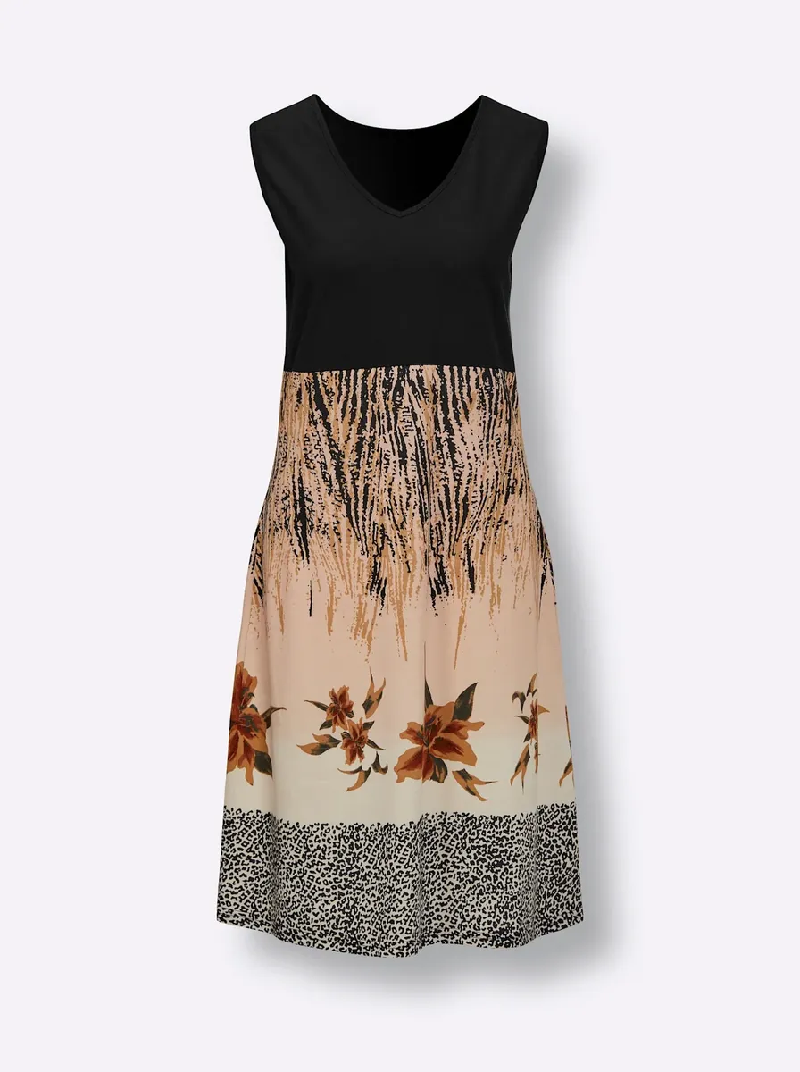 Это летнее платье с эксклюзивным миксом принтов неописуемо удобно. Одинарный трикотаж. 50% хлопок, 50% модал.