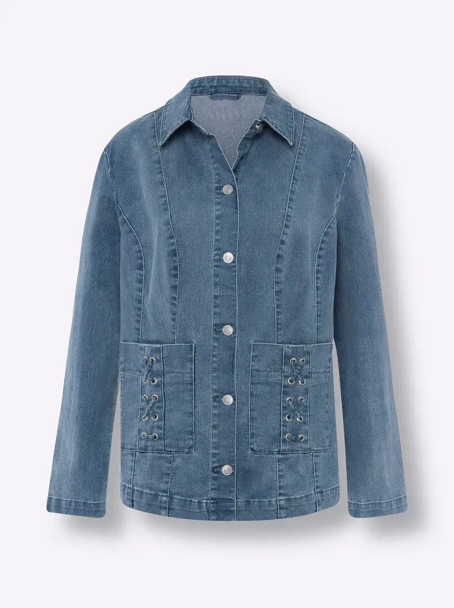 Это несложный, универсальный и настоящая классика моды. Речь идет об этой джинсовой куртке! Стильная модель с металлическими пуговицами на планке. 2 накладных кармана с люверсами и декоративной шнуровкой. Венские швы и разделительные швы создают красивую, удобную посадку по фигуре. 81% хлопок, 17% полиэстер, 2% эластан. Машинная стирка.