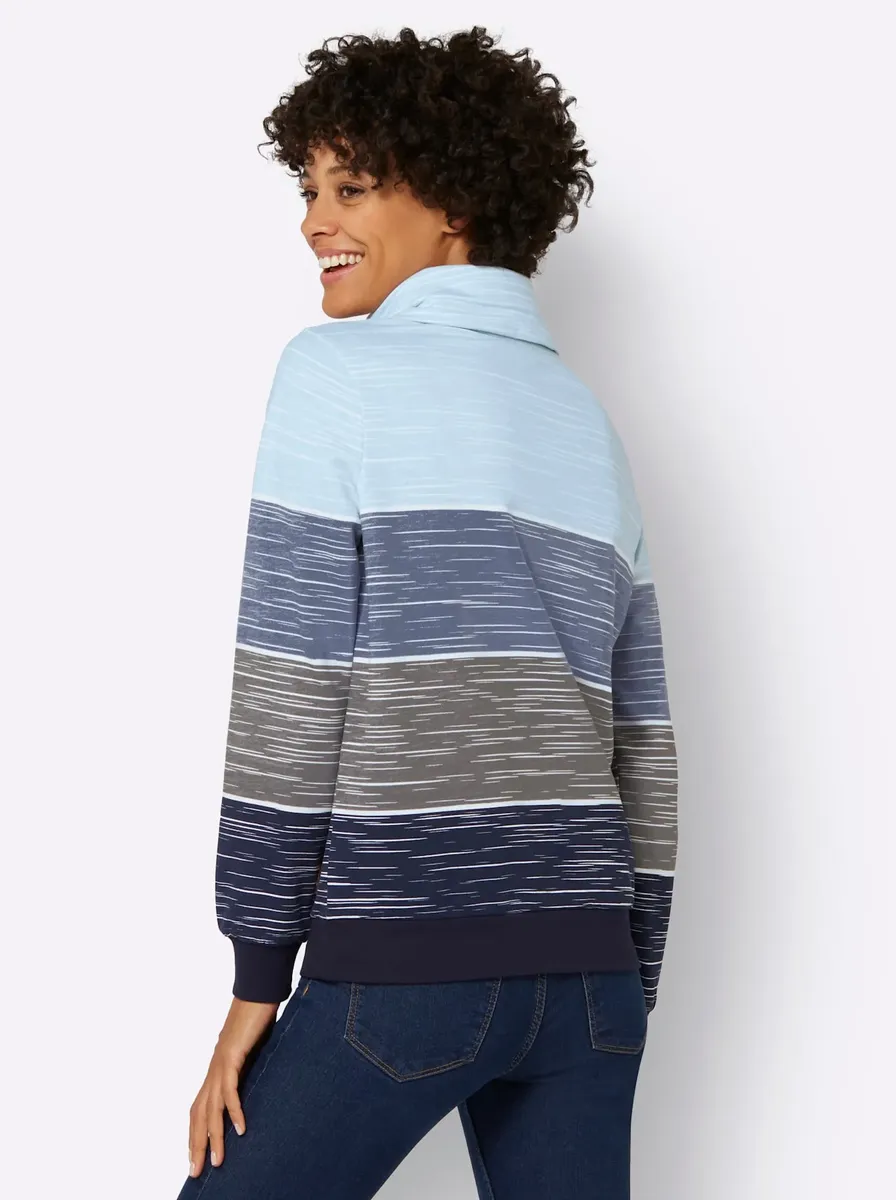 Колорбокинг и цветовой градиент: в этой толстовке встречаются две повседневные тенденции! С кулиской и декоративными пуговицами на воротнике-стойке внахлест. Эластичные манжеты на длинных рукавах и по низу. Мягко начесанный внутри. Поддержите инициативу «Хлопок, сделанный в Африке». 50% хлопок, 50% полиэстер. Машинная стирка.