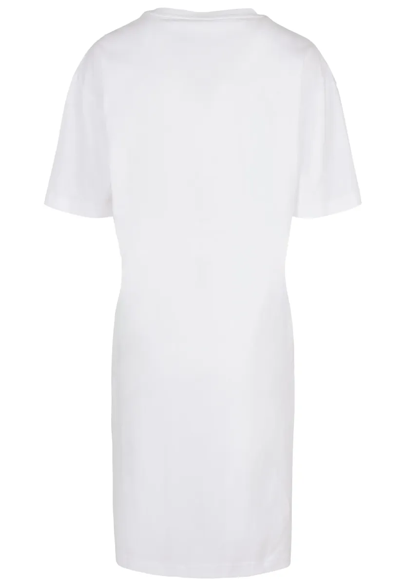 Городской образ с дополнительной долей непринужденности – женское платье прямого кроя модного кроя оверсайз. Часть верхней части тела очень напоминает свободную футболку, но от бедра платье имеет разрез справа, так что оно не только удобно в ношении, но и подчеркивает ноги. Разделительный шов находится на талии, а плечи перекрываются.