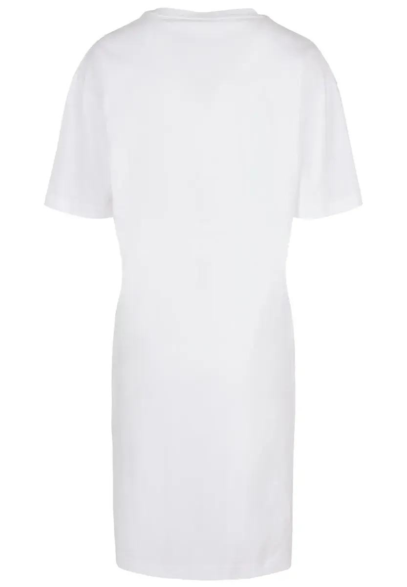 Городской образ с дополнительной долей непринужденности – женское платье прямого кроя модного кроя оверсайз. Часть верхней части тела очень напоминает свободную футболку, но от бедра платье имеет разрез справа, так что оно не только удобно в ношении, но и подчеркивает ноги. Разделительный шов находится на талии, а плечи перекрываются.