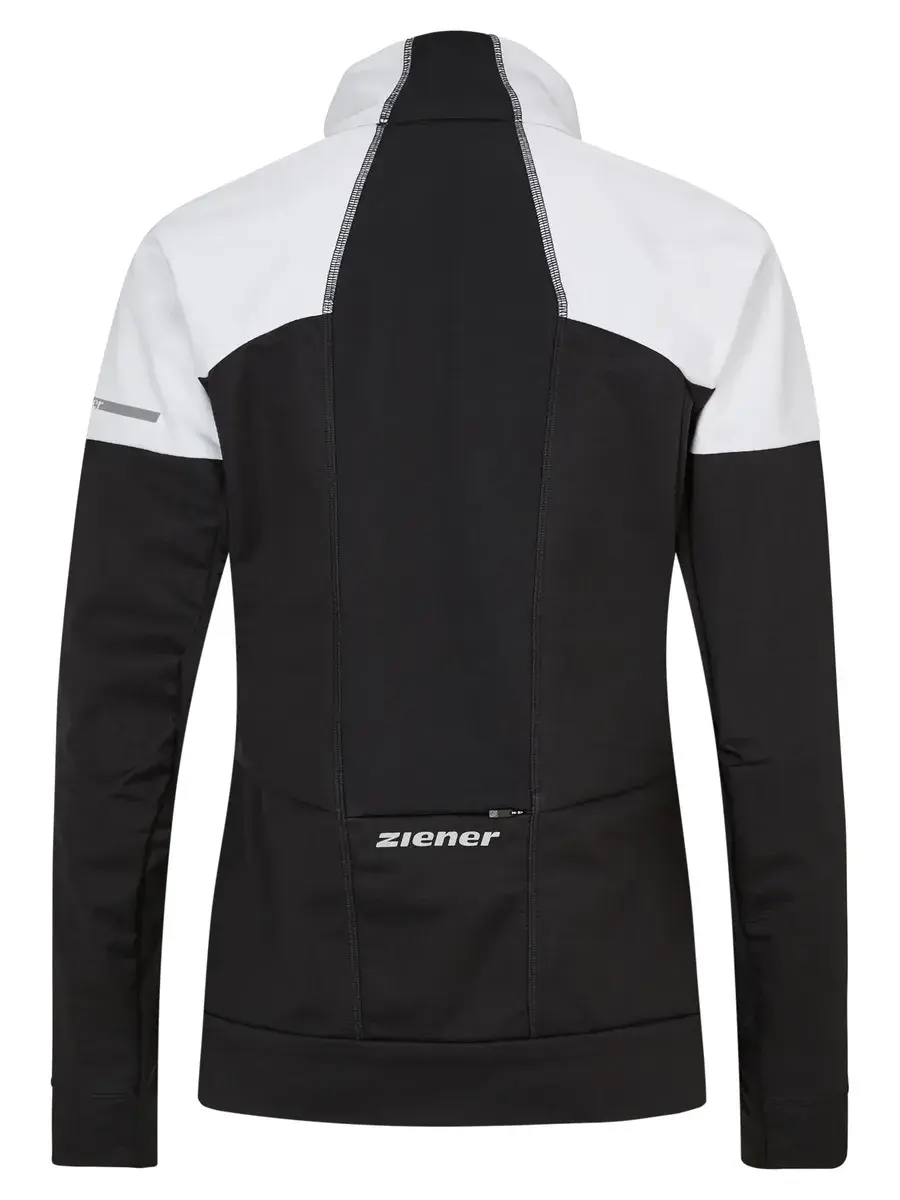 Функциональная женская куртка ZIENER софтшелл NORIKA LADY из дышащего эластичного материала идеально подходит для катания на беговых лыжах. Специальные вставки на спине и под мышками обеспечивают лучшую мобильность и вентиляцию, а использование дышащего и ветронепроницаемого материала ZIENER WINDSHIELD предотвращает охлаждение на ветру. Верхняя часть передней части также оснащена набивкой плотностью 100 г/м². Благодаря экологически чистой пропитке куртка не содержит ПФУ. Передний карман на молнии гарантирует надежное место для самых важных вещей, а смартфон можно оптимально хранить в заднем кармане на молнии. Эластичный низ обеспечивает идеальную посадку, а светоотражающие элементы повышают видимость.