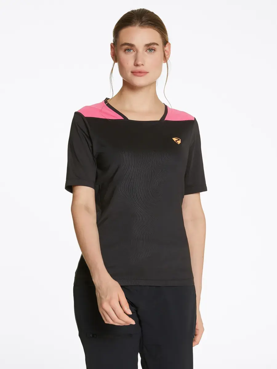 Функциональная женская футболка ZIENER NADELIA LADY с модным рисунком гарантирует оптимальный комфорт при ношении благодаря быстросохнущему и эластичному материалу. Самые важные вещи можно хранить в бесшовном кармане на молнии.