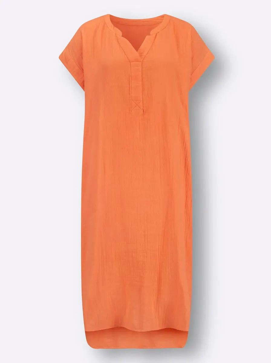 Заходите и испытайте приключения! Платье из воздушного, тонко структурированного муслина с круглым вырезом и V-образным вырезом внахлест. Небрежно завышенные плечи. 2 накладных кармана. Боковые разрезы для большей свободы движений. Подол немного длиннее и слегка закруглен сзади. Поддержите инициативу «Хлопок, сделанный в Африке». 100% хлопок. Машинная стирка.