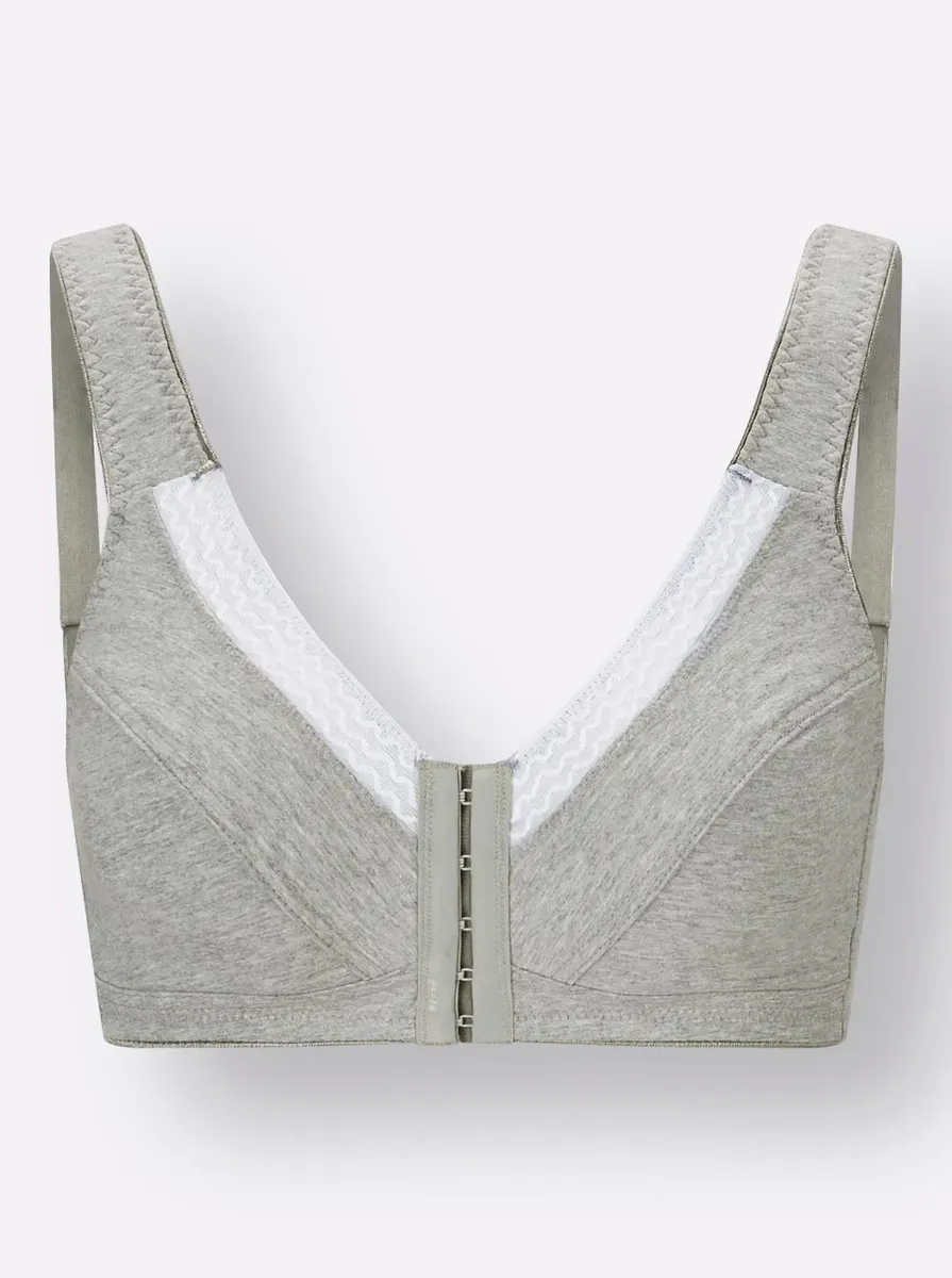 Бюстгальтер с застежкой спереди без косточек от Waschpur нашей формы PERLE. Красиво: эластичная кружевная лента спереди на вырезе. С чашками, состоящими из двух частей, и мягкими бретелями, которые можно регулировать сзади. Застежка на крючок спереди. 76% хлопок, 18% полиамид, 6% эластан. Машинная стирка.