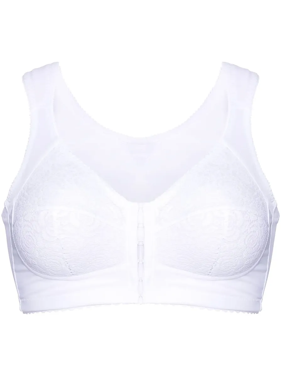 Бюстгальтер с застежкой спереди без косточек от Waschpur. Чашки из трех частей с кружевным декором и нижними чашками на подкладке. Идеальная поддержка и оптимальный комфорт при ношении благодаря поддерживающей спинке и широким мягким бретелям. 81% полиамид, 15% эластан, 4% хлопок.