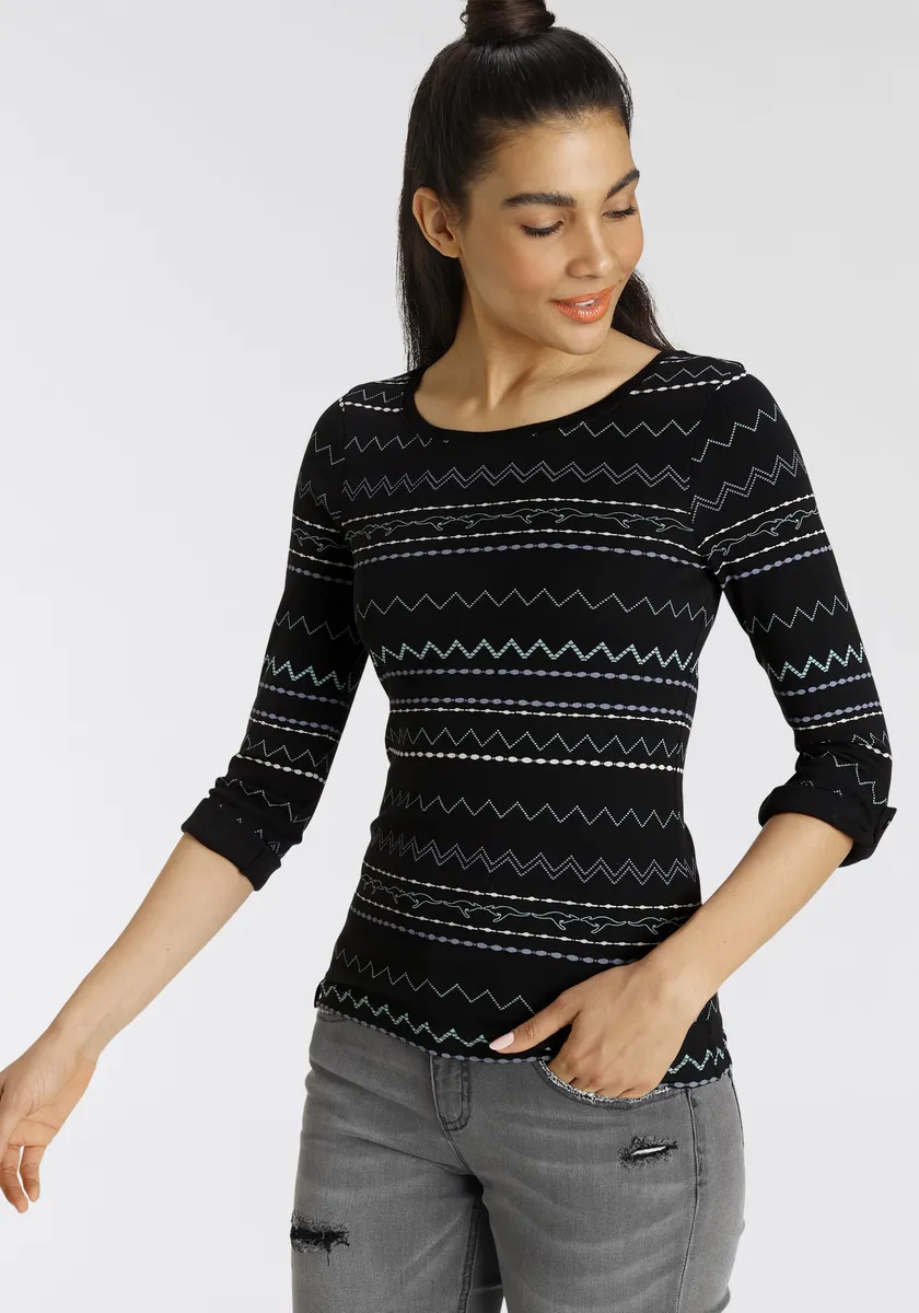 Рубашка KangaROOS с длинными рукавами и модным зигзагообразным узором, черный 4 184₽