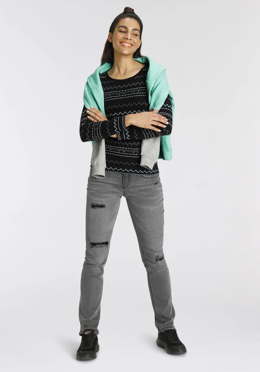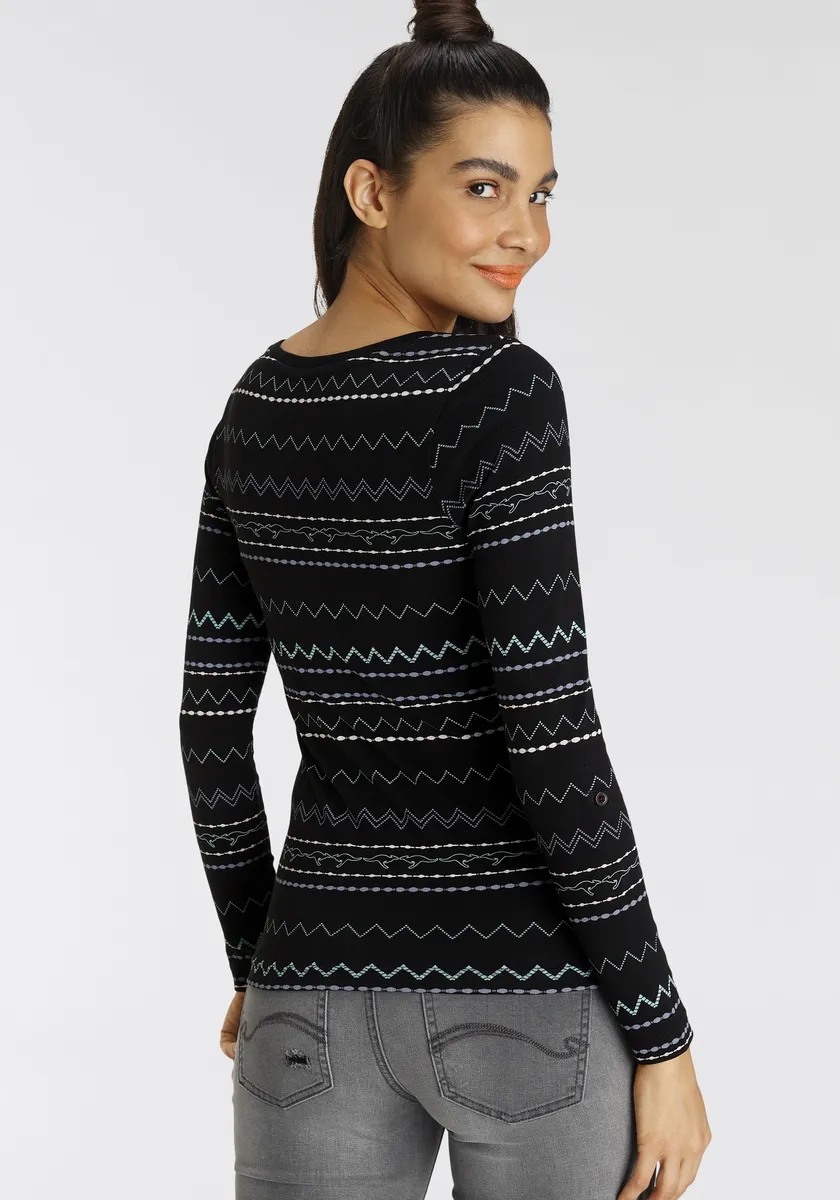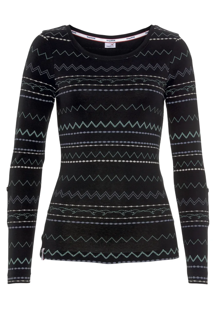 Рубашка KangaROOS с длинными рукавами и модным зигзагообразным узором, черный