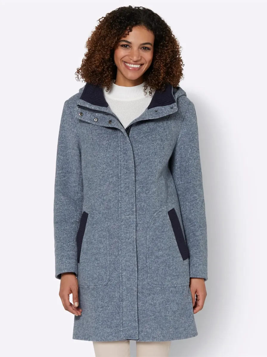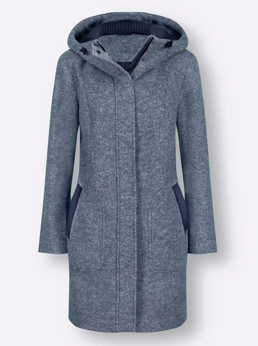 Это повседневное пальто теплого, слегка пестрого качества просто идеально подходит для вашей следующей поездки за город! Контрастные цветные акценты на отложном воротнике и двух карманах. Мягкие трикотажные манжеты на воротнике и рукавах делают его очень удобным в носке. Капюшон на кулиске и шнурке, потайная двусторонняя молния с дополнительной планкой на кнопках. 100% полиэстер. Подкладка: 100% полиэстер. Внутри воротника: 100% полиакрил. Машинная стирка.