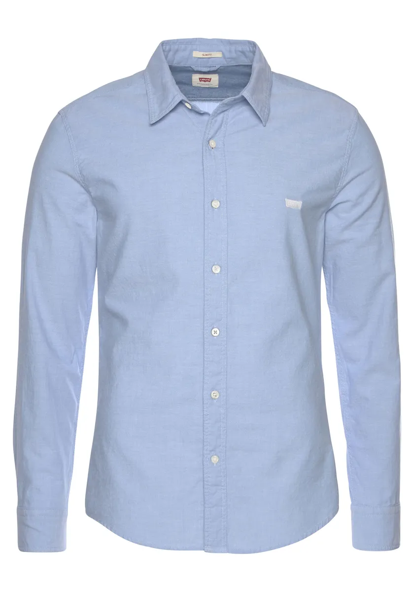 Комбинированная мужская рубашка из плотного денима от Levi's с логотипом. С гибким вырезом. Рукава длинные. Имеет модный значок. Верх приятен к коже благодаря мягкому хлопку.