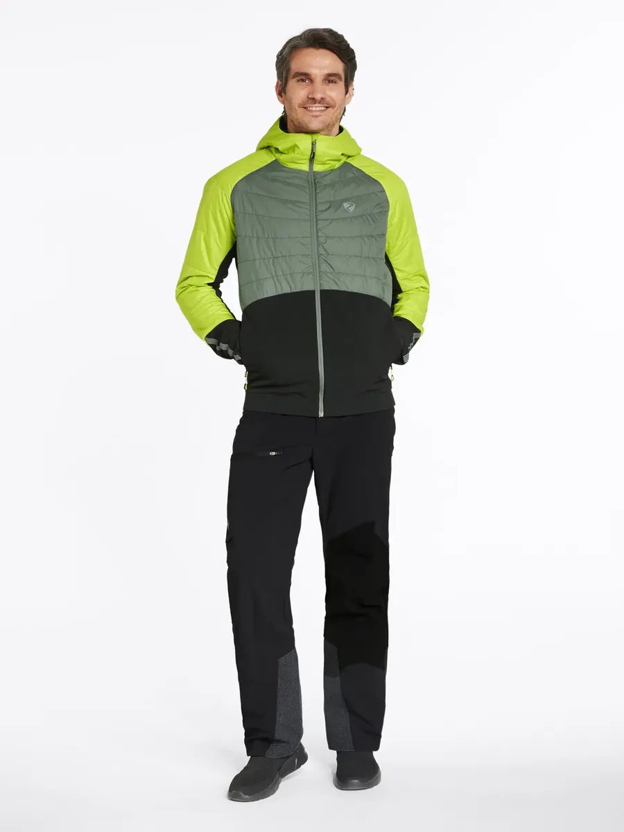 Функциональная мужская шерстяная гибридная куртка ZIENER NAKOS MAN с ZIENER WEATHERSHIELD обеспечивает хорошую функциональность и защиту благодаря водо- и ветроотталкивающим материалам - независимо от того, идет ли легкий дождь, ветер или снег. Шерстяная подкладка лавалан (60 г/м²) и шерстяная подкладка Stormfleece обеспечивают дополнительное тепло. Несъемный капюшон с высоким воротником обеспечивает высокий уровень функционального комфорта. Эластичный материал верха обеспечивает свободу движений. А если вы начнете потеть, вентиляционные отверстия на спине обеспечат приятный микроклимат. Благодаря экологически чистой пропитке куртка не содержит ПФУ. Два кармана для рук на молнии гарантируют надежное место для хранения мелких предметов. Куртка также имеет светоотражающие элементы дизайна. Идеально подходит для занятий спортом с интенсивным движением, где требуется максимальная воздухопроницаемость!