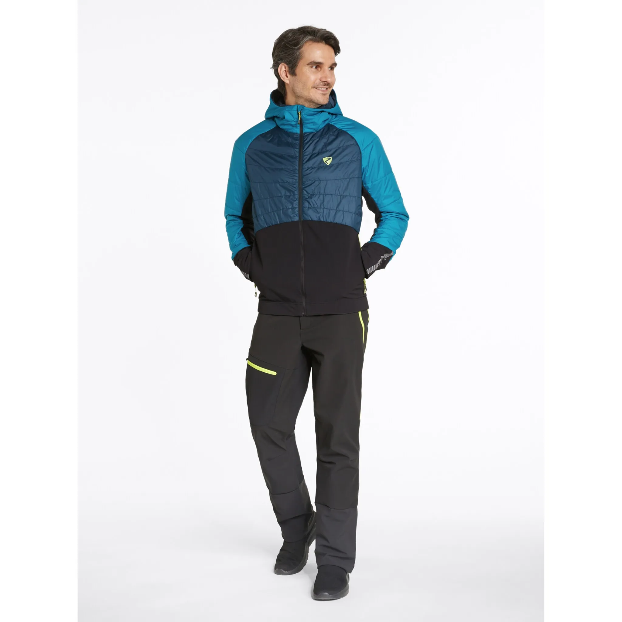 Функциональная мужская шерстяная гибридная куртка ZIENER NAKOS MAN с ZIENER WEATHERSHIELD обеспечивает хорошую функциональность и защиту благодаря водо- и ветроотталкивающим материалам - независимо от того, идет ли легкий дождь, ветер или снег. Шерстяная подкладка лавалан (60 г/м²) и шерстяная подкладка Stormfleece обеспечивают дополнительное тепло. Несъемный капюшон с высоким воротником обеспечивает высокий уровень функционального комфорта. Эластичный материал верха обеспечивает свободу движений. А если вы начнете потеть, вентиляционные отверстия на спине обеспечат приятный микроклимат. Благодаря экологически чистой пропитке куртка не содержит ПФУ. Два кармана для рук на молнии гарантируют надежное место для хранения мелких предметов. Куртка также имеет светоотражающие элементы дизайна. Идеально подходит для занятий спортом с интенсивным движением, где требуется максимальная воздухопроницаемость!