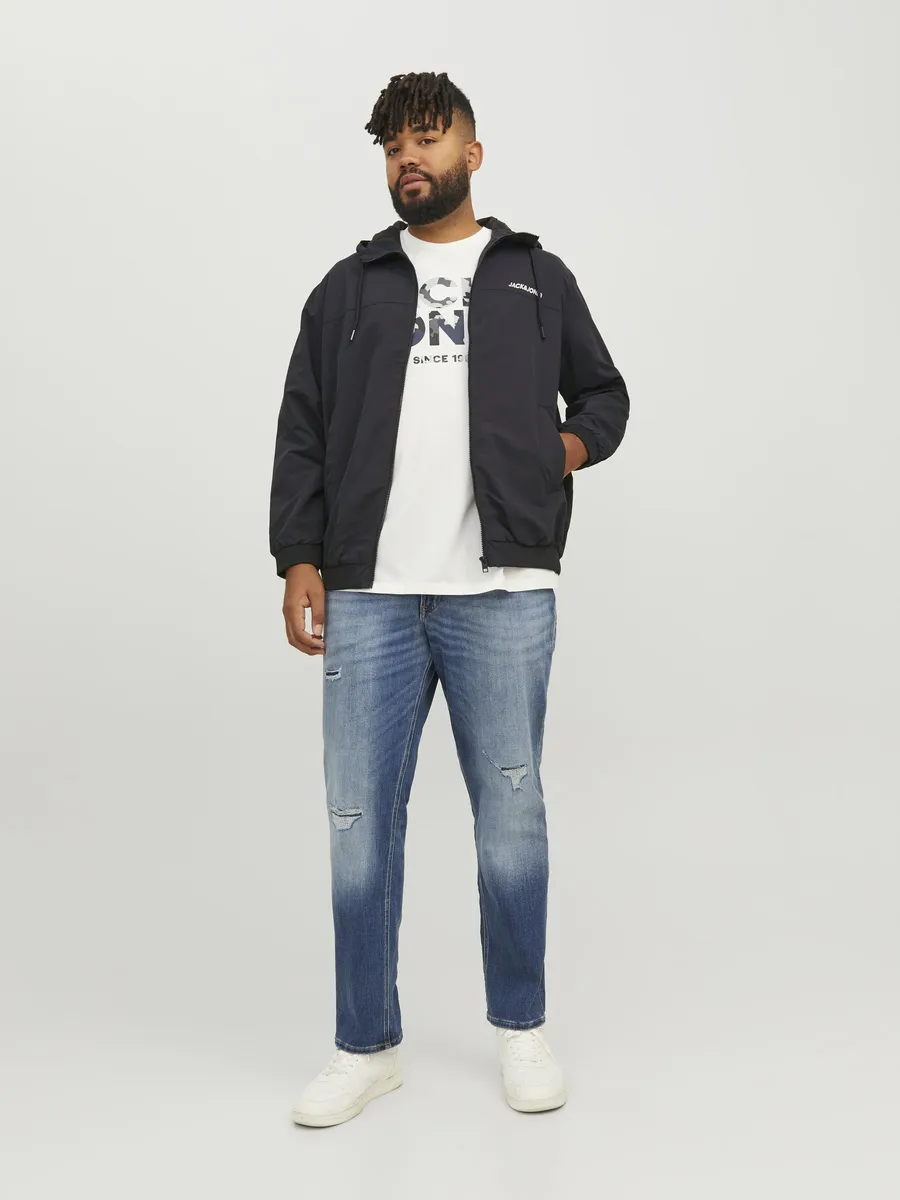 Бомбер Jack & Jones PlusSize "JJERUSH HOOD BOMBER NOOS PLS", с капюшоном, черный