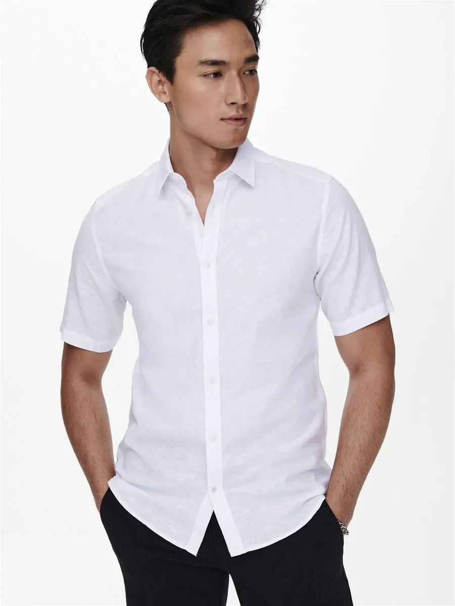 Рубашка ONLY & SONS с короткими рукавами "ONSCAIDEN SS SOLID LINEN SHIRT NOOS", белый