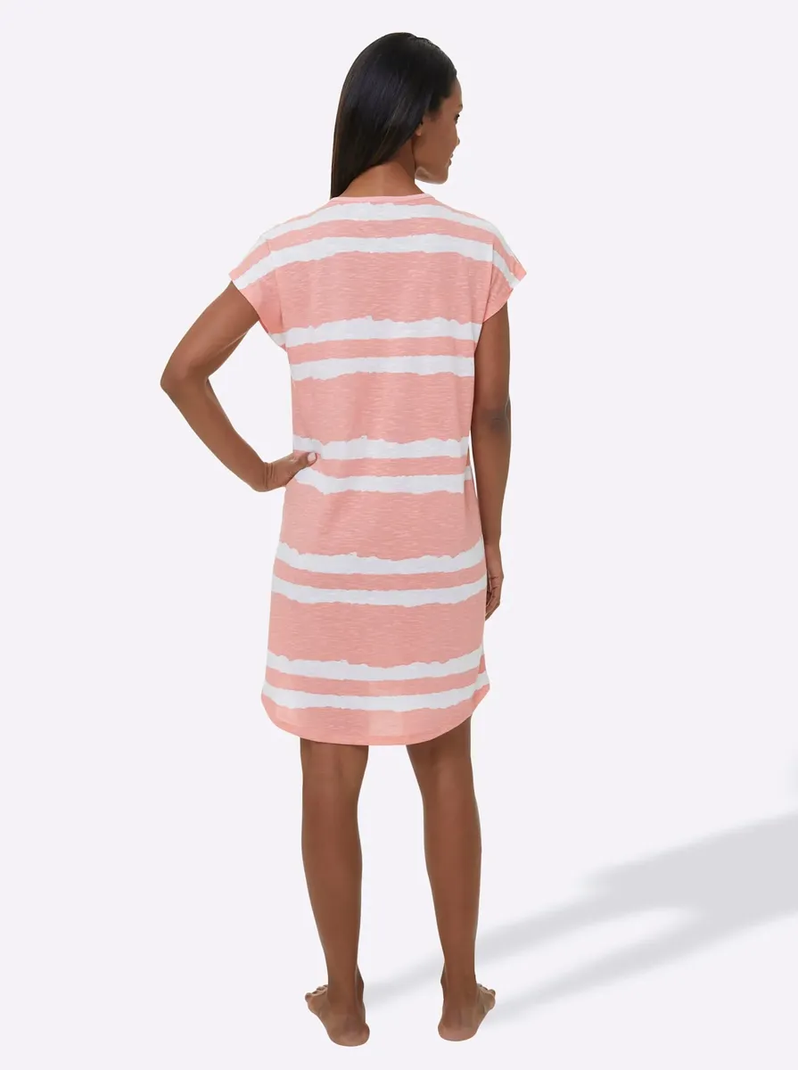 В двойной упаковке и во всех отношениях успешные: рубашки для сна с модным структурированным эффектом из васпура. С круглым вырезом, небрежно заниженной линией плеч, короткими рукавами, принтом спереди и слегка закругленным низом. В удобном трикотажном исполнении. 65% полиэстер, 35% хлопок.