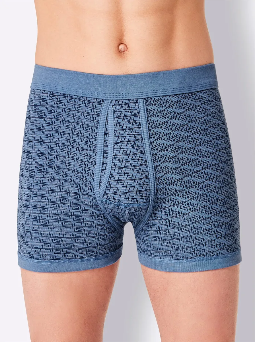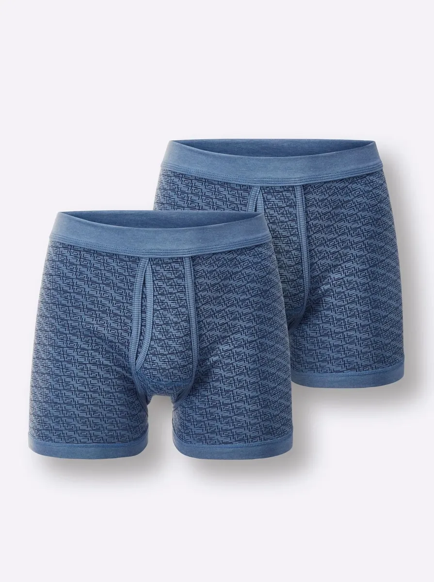 В двойной упаковке: короткие брюки с принтом, двойной мягкий эластичный пояс и ширинка. Климат-регулирующее качество с тонкими ребрами. 75% хлопок, 25% полиэстер.
