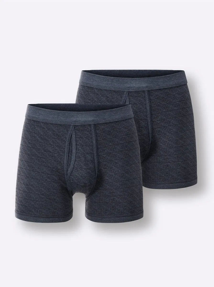 В двойной упаковке: короткие брюки с принтом, двойной мягкий эластичный пояс и ширинка. Климат-регулирующее качество с тонкими ребрами. 75% хлопок, 25% полиэстер.