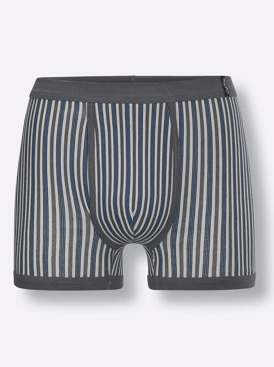 В двойной упаковке: короткие брюки с ширинкой в ​​яркую полоску от King's Club. С контрастными полосками на удобном мягком поясе, из мягкой ткани в рубчик. Поддержите инициативу «Хлопок, сделанный в Африке». 100% хлопок.